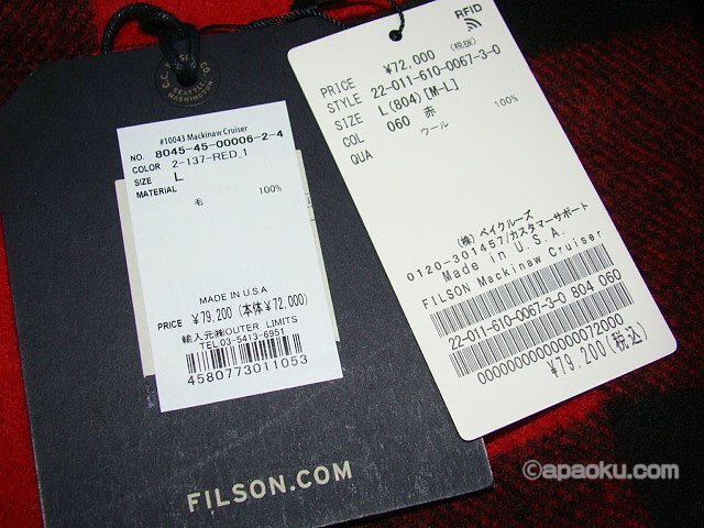 100■フィルソン マッキーノクルーザージャケット レッド×ブラック Lサイズ 未使用 SK6_240318_3