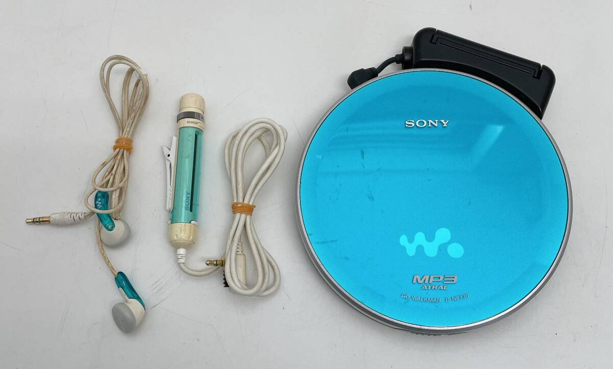 【SONY ソニー D-NE730 Walkman CDプレーヤー】イヤホン付/平成レトロ/通電OK/ブルー/現状品/A711-379