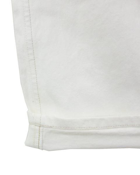 | 白地に薄ベージュステッチのオシャレなデニムパンツ。白のデニムでワントーンコーデで爽やかスタイルはいかがでしょうか?春夏に使いやすい白パンツはオススメアイテムです。 |