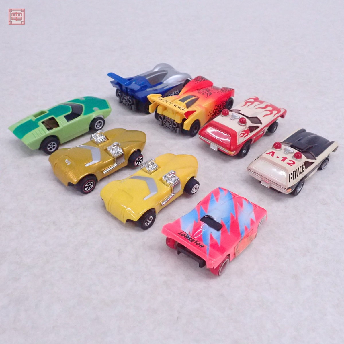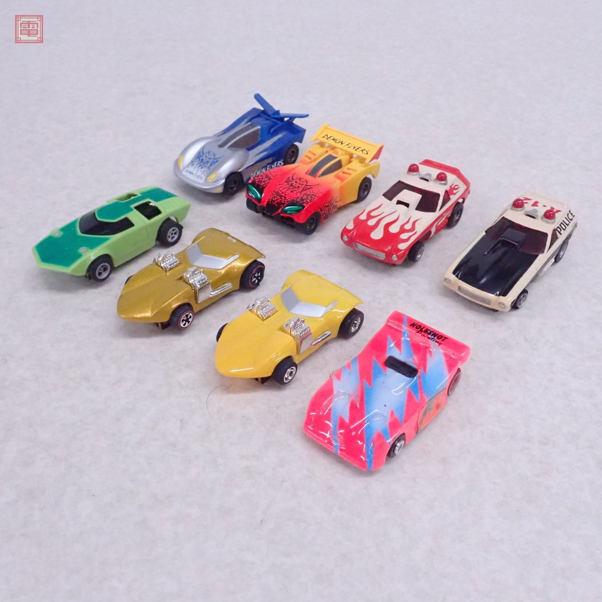 TYCO/AFX/SCALEXTRIC MICRO他 HOスロットカー ツインミル/Vega Police Cruiser/DEMON FLYERS 等 計8台セット 動作確認済 ■簡易動作の確認をしました。 ■外箱が欠品しています。 ■ボディにスレ、キズ、汚れ、テープによる修復跡があります。 ■付属物については簡易検品は行っておりますが詳細なチェックは行っておりませんので、万が一、欠品や余分なものが入っていたとしてもご了承ください。 ■1体ずつの個別梱包ではなく、まとめての梱包・発送をいたします。 ■こちらの商品は輸送時の衝撃等の破損が考えられます。そのため当店で検品した状態と異なる場合がございますがご了承下さい。 ■写真のものが全てです。付属物の有無や状態については写真からご判断ください。 ■付属物については細かいチェックはしておりませんので、万が一、欠品があったり余計な物が入っていたとしてもご了承ください。 ■商品到着後、当店の保証期間中は、商品及び箱や取説、付属品などを1つでも廃棄や破損をしないようにお願い致します。廃棄や破損をした場合、商品に問題があった場合でも対応や返金などの対処ができなくなります。 ■商品によりますが、発売されてから10年以上経過している中古品である事をご理解頂いた上でご入札をお願い致します。なお、新品や美品、また特記事項がある場合は別途明記します。 | |||