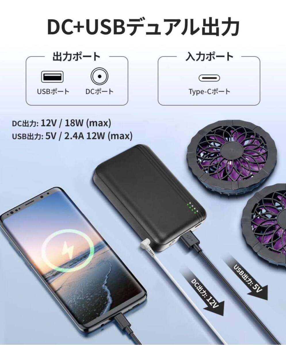 電熱ベスト バッテリー モバイルバッテリー 電熱ジャケット専用バッテリー 5V/3A MAX 15W 2台同時充電 10000mAh 大容量 電熱ベスト