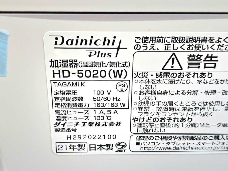 | ★未使用★ Dainichi ダイニチ ハイブリッド式加湿器 HD-5020 日本製 静音タイプ Ag+抗菌アタッチメント 2021年製 |