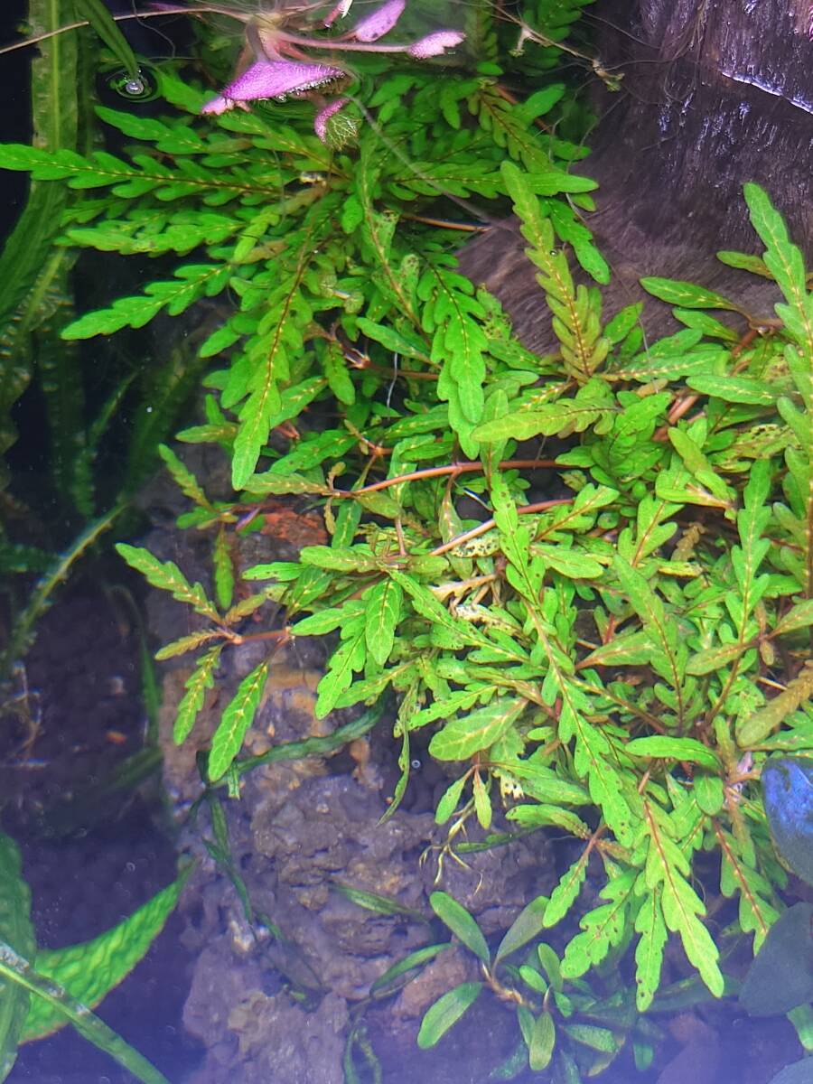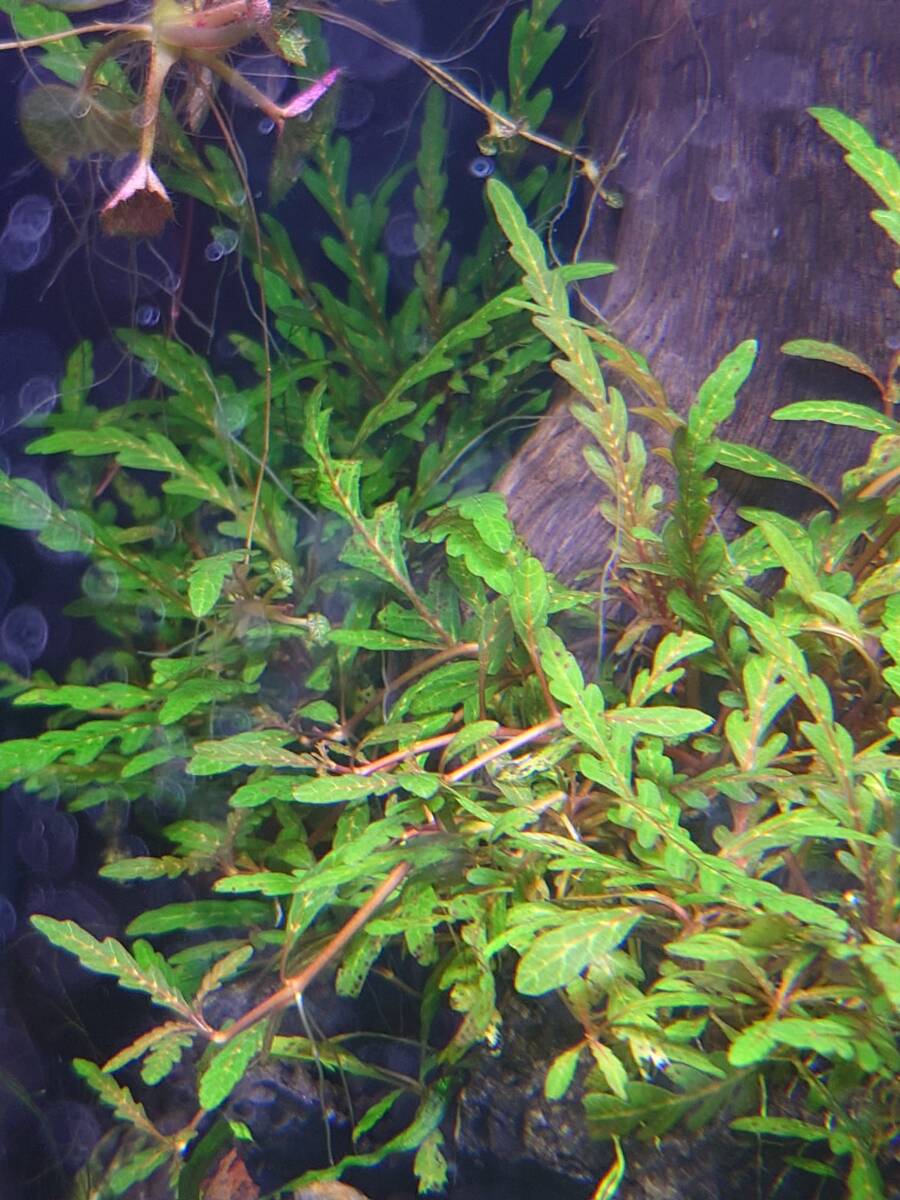 通常種よりも葉幅が狭く、赤味が強く出やすいのが特徴で、レイアウトのアクセントとして人気の高い種類です。
