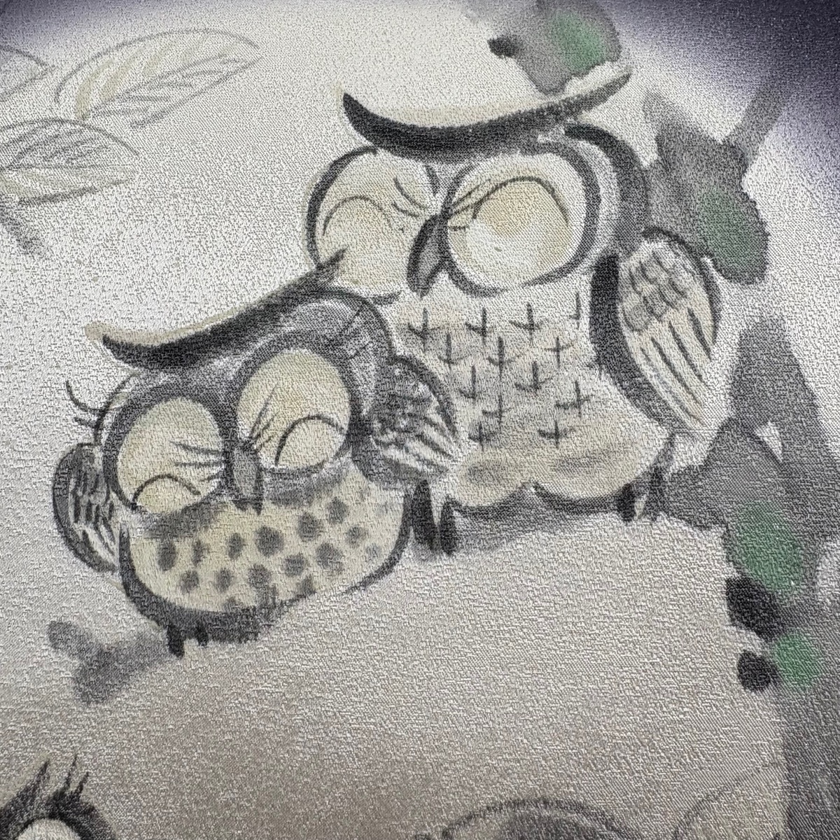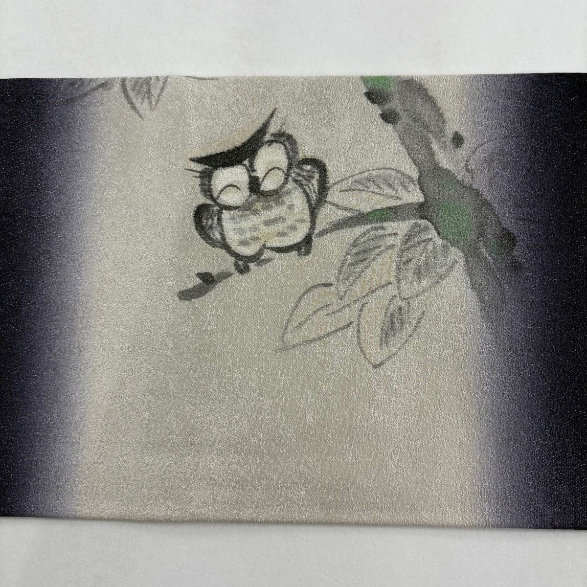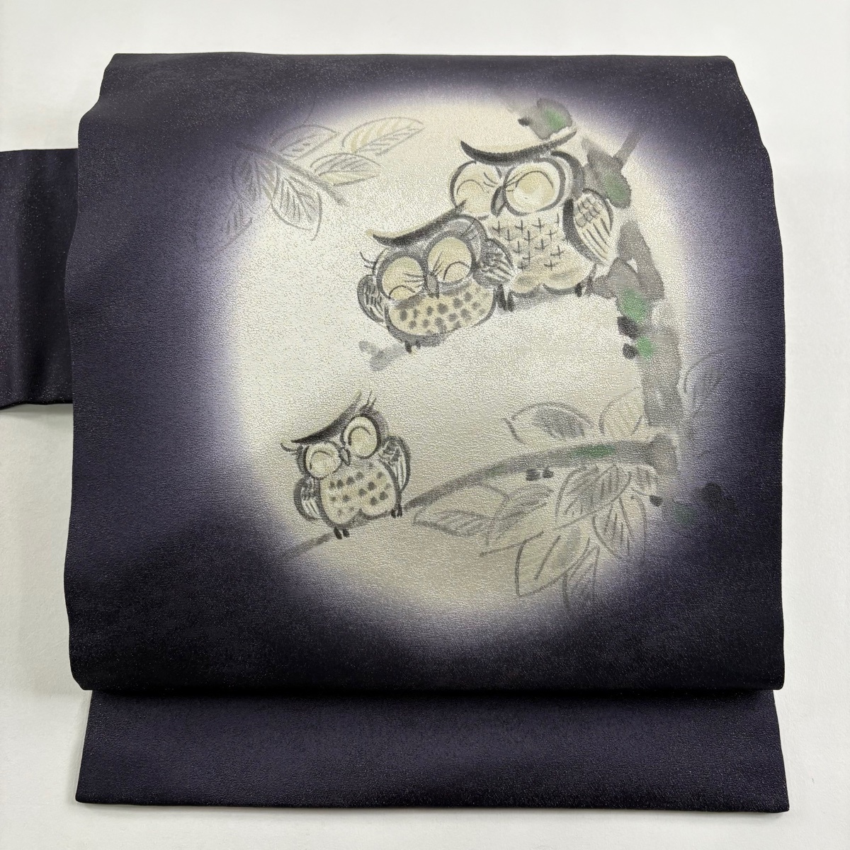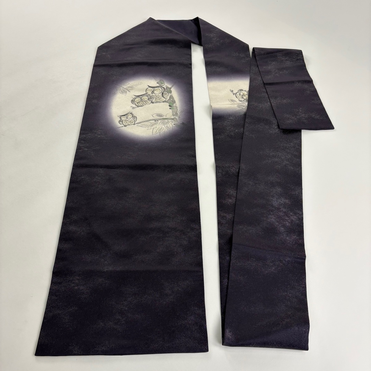 | 名古屋帯 美品 名品 みみずく 枝葉 銀通し 銀彩 濃紫 正絹 【中古】 |