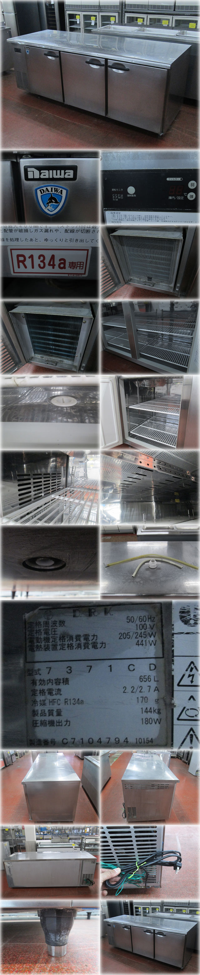 ダイワ冷機 冷蔵コールドテーブル 7371CD を出品いたします。 ■特徴■ 新マイコン&デジタル表示 フィルターの目詰まりは 事前にフィルター警報ランプでお知らせします。 停電の場合でも設定内容は記憶されていますので 自動的に復帰します。 また、デジタルの輝度アップで 温度表示が見やすくなりました。 連続30万回の開閉テストクリア 扉にはステンレス製ヒンジを採用。 ステンレス扉 油・調味料などの汚れを簡単に清掃できます。 高さ調節が可能な収納棚 棚のピッチは12mmきざみで 収納物にあった高さに調節できます。 庫内アール加工仕上げ 庫内の各コーナーにアール加工をしていますので、 掃除が楽に行えます。 ■仕様■