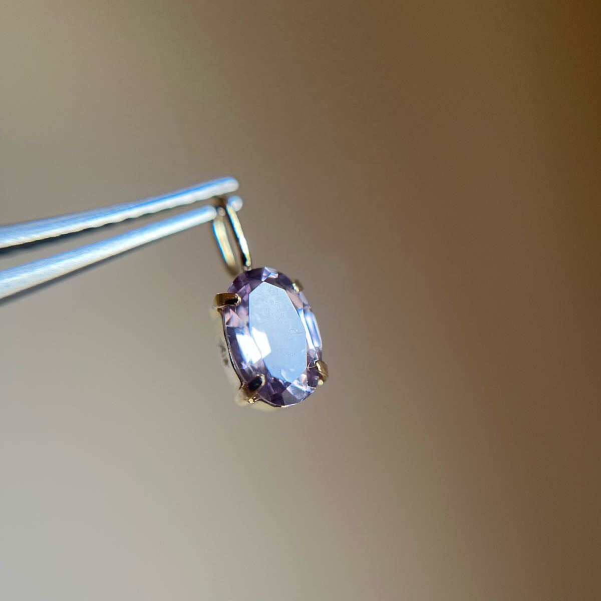 天然石ラベンダースピネルのオーバルカットのペンダントトップです。