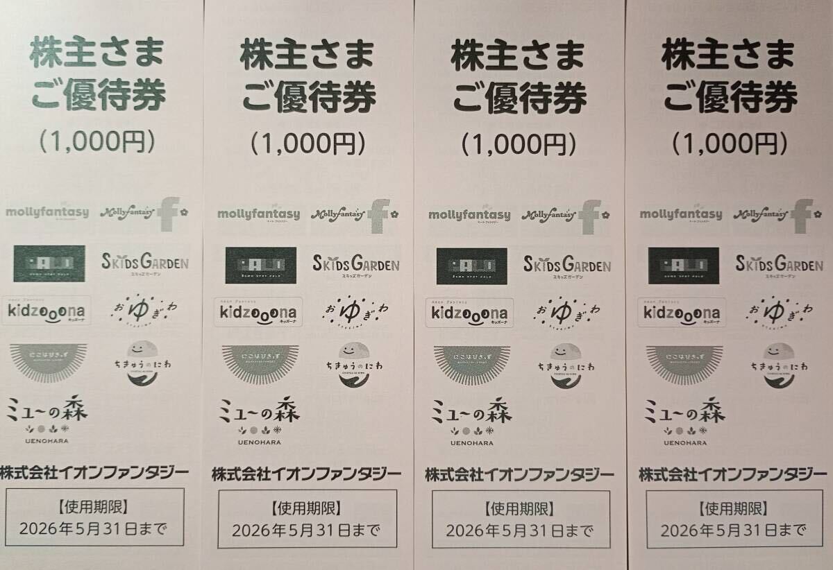 株主さまご優待券 4000円分(1000円×4冊)を出品します。