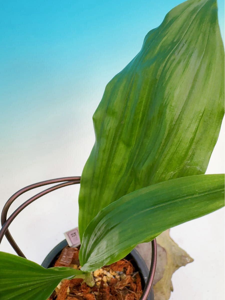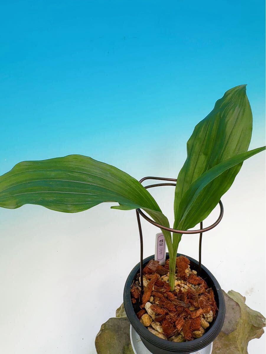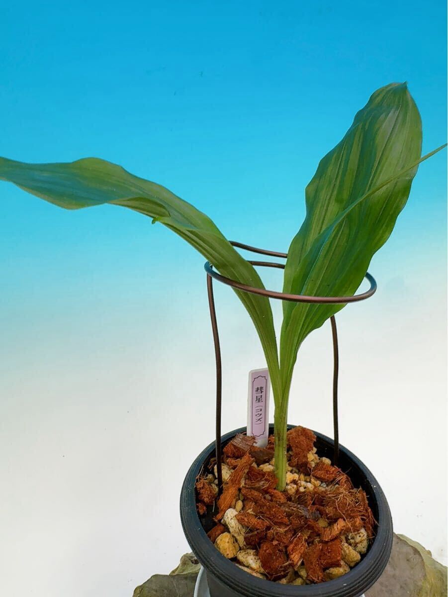 数ある中から当苑のえびねをご閲覧頂き誠に有難うございます。☆ 今回の出品はコウズ系交配の有名花「彗星」 ”suise”です。九州には白ヒゴで同名の有名花があるので少し戸惑いますが、こちらはコウズの「彗星」です。濃紫弁白舌でブルーの色味の強い有名な花です。他のブルーとか青紫とか言われている花と比べると、かなり色味が違い青の色合いがかなりしっかりしておりますのでとても目立ちますね。遠くからこの系統の色の近い花をたくさん並べても青みの違いが分かるくらいの花です。型も正開でばらけませんし九州の趣味者の方にも十分に受け入れられる花ではないかと思います。親はコウズ系と言うだけで存じておりません。新葉が撮影日現在で31㌢26㌢23㌢バックバルブ付3.5号ポット植えです。サイズ的に中苗程度のサイズです。ちょうどいいくらいのお得なお買い得苗ですよ。 ☆♪.:*:'゜☆.:*:'゜♪.:*:'゜☆.:*:・'゜♪.:*:・'゜☆.:*:・'゜♪.:*:花や株のサイズなどなど写真にも少々説明を掲載してございますのでそちらもご確認ください。