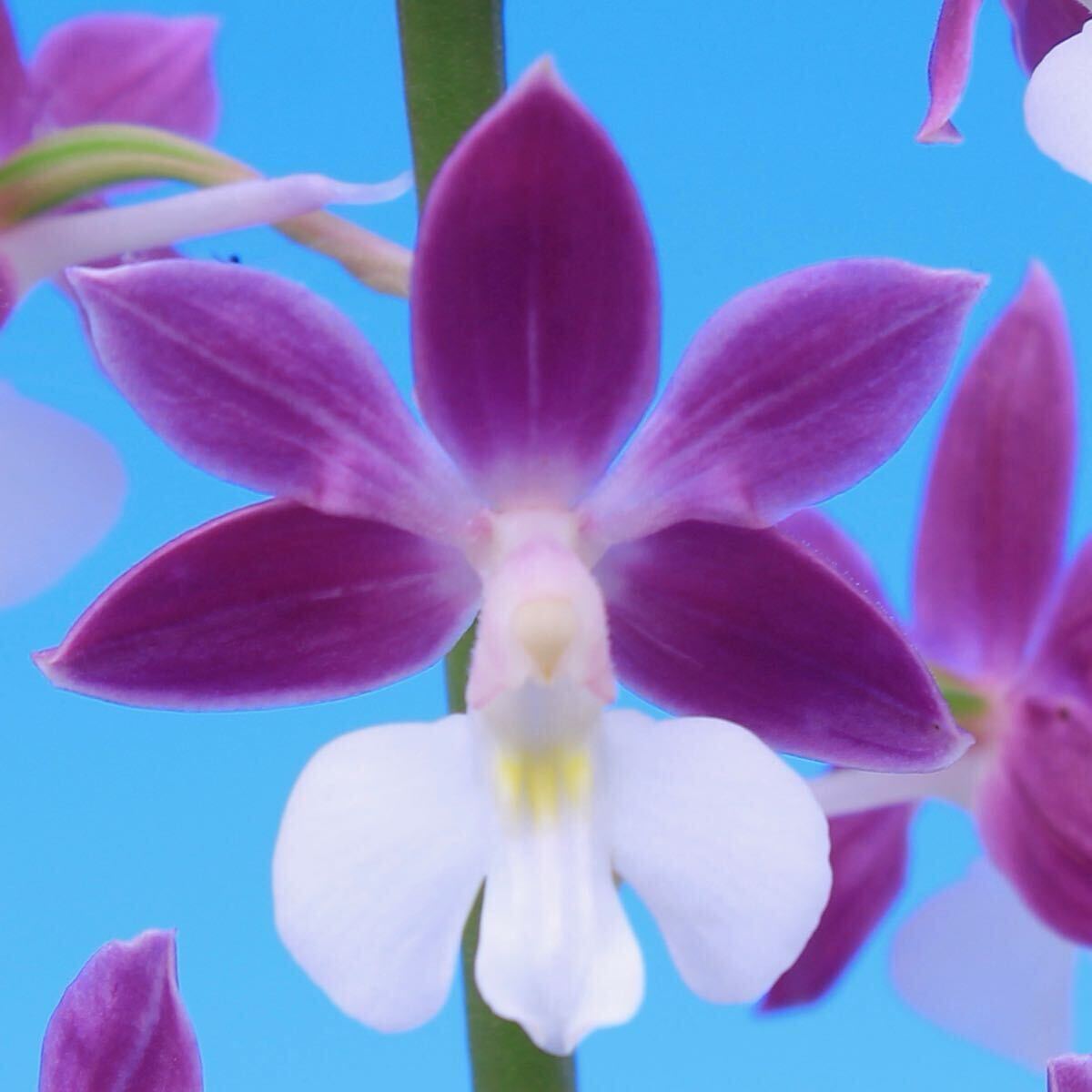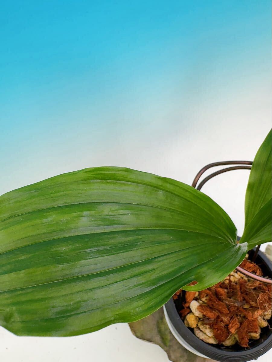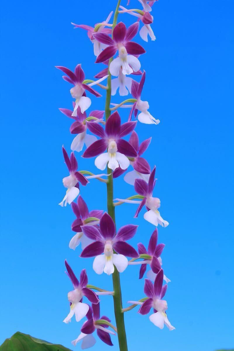 数ある中から当苑のえびねをご閲覧頂き誠に有難うございます。☆ 今回の出品はコウズ系交配の有名花「彗星」 ”suise”です。九州には白ヒゴで同名の有名花があるので少し戸惑いますが、こちらはコウズの「彗星」です。濃紫弁白舌でブルーの色味の強い有名な花です。他のブルーとか青紫とか言われている花と比べると、かなり色味が違い青の色合いがかなりしっかりしておりますのでとても目立ちますね。遠くからこの系統の色の近い花をたくさん並べても青みの違いが分かるくらいの花です。型も正開でばらけませんし九州の趣味者の方にも十分に受け入れられる花ではないかと思います。親はコウズ系と言うだけで存じておりません。新葉が撮影日現在で31㌢26㌢23㌢バックバルブ付3.5号ポット植えです。サイズ的に中苗程度のサイズです。ちょうどいいくらいのお得なお買い得苗ですよ。 ☆♪.:*:'゜☆.:*:'゜♪.:*:'゜☆.:*:・'゜♪.:*:・'゜☆.:*:・'゜♪.:*:花や株のサイズなどなど写真にも少々説明を掲載してございますのでそちらもご確認ください。