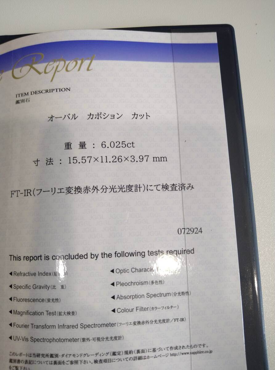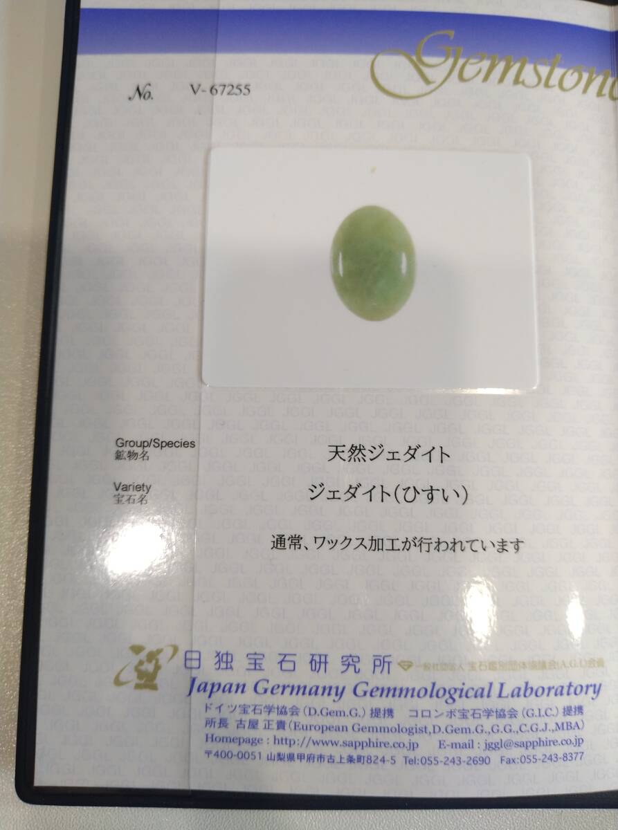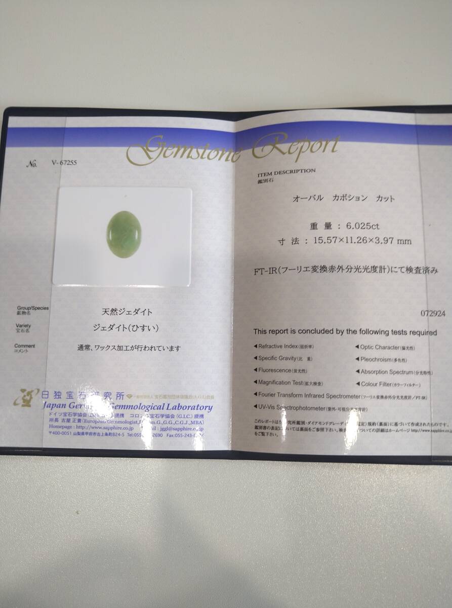鑑定書付き 天然石 ジェダイト 翡翠 6.025カラット
