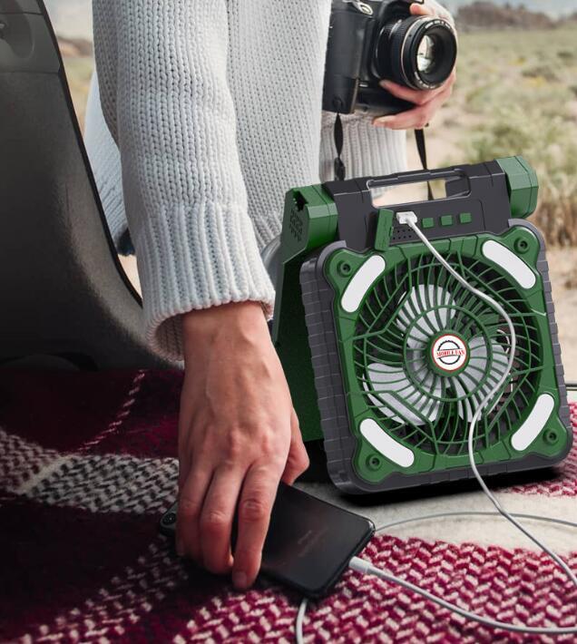 梱包サイズ:24.7 x 18.8 x 8.8 cm 機能:軽量, タイマー, LEDライト, ソーラー充電 電池種別:リチウムイオン電池 梱包重量:約1.03kg バッテリー容量:7800mah。 充電方法:USB充電/ソーラー充電。 風量:4段階調整。 ライト:3段階調整。 タイマー切り:2H/4H/8H。 サイズ:23*17.5*7.5cm。 角度調整:前後90°。 充電時間:出力5V2AのUSB充電で、フル充電は約4~6時間です。 日光の直射を受けるソーラー充電で、フル充電は約8~15時間です。
