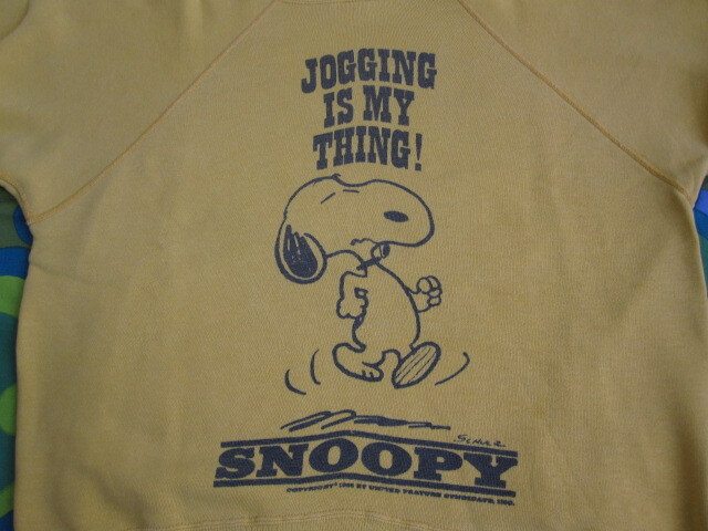 貴重 ビンテージ オリジナル SNOOPY スヌーピー SPRUCE スプルース スウェット メンズS程度 黄色/染み込みプリント アメリカ古着