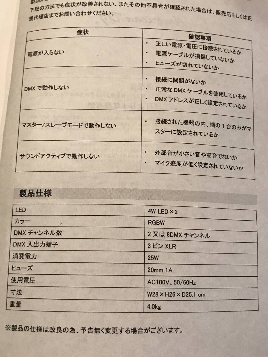 A9520●エフェクト照明 エフェクトライト アメリカンDJ DEKKER LED 舞台照明 ライブハウス クラブ ディスコ パーティー RGBW 4W LED×2 25W W28×H26×D25.1 4.0Kg 中古品 簡易動作確認済(点灯のみ)。