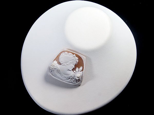 髪の毛を巻いた貴婦人の彫刻が魅力的なシェルカメオルースを激安価格で特別大放出致します!