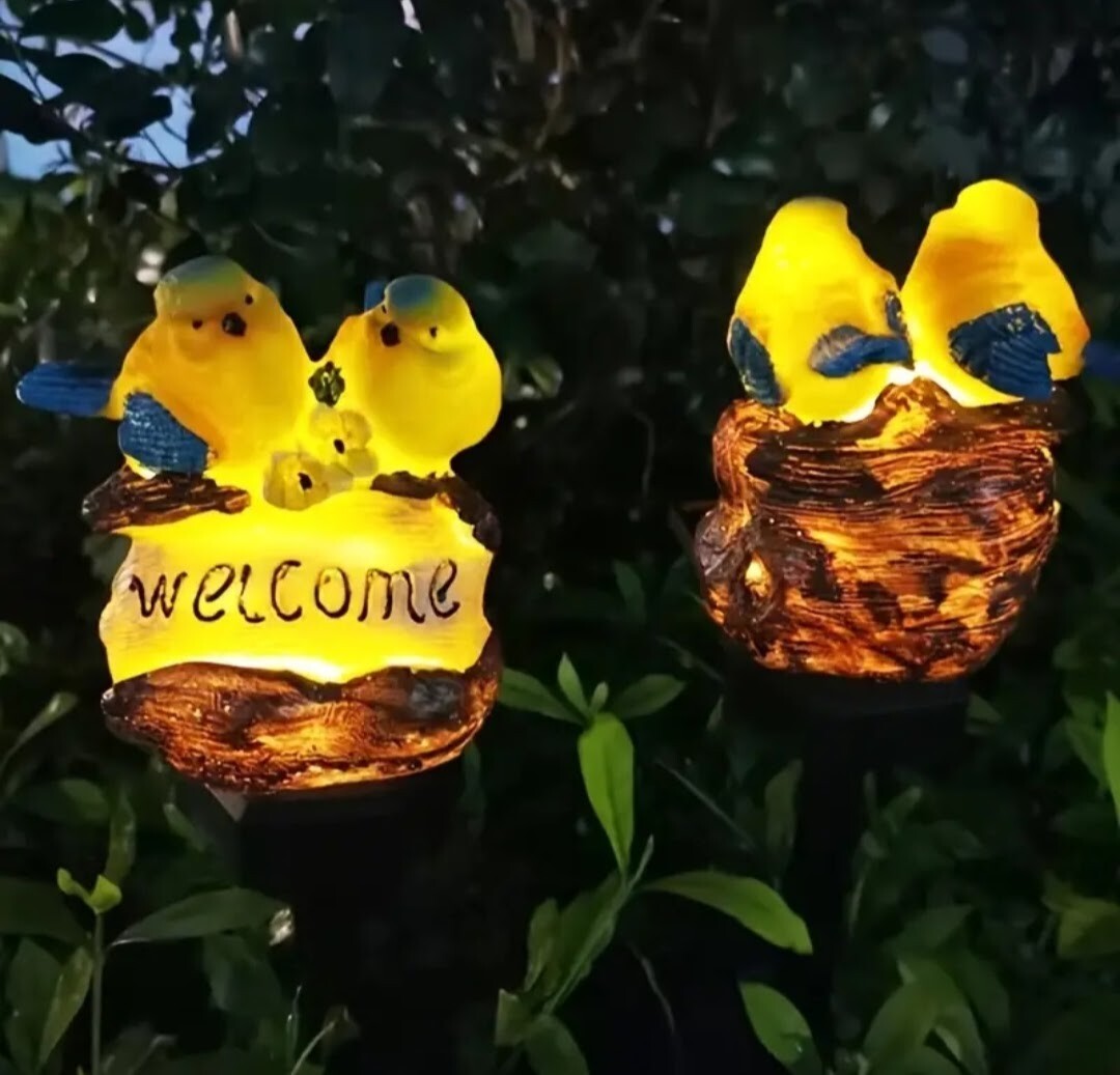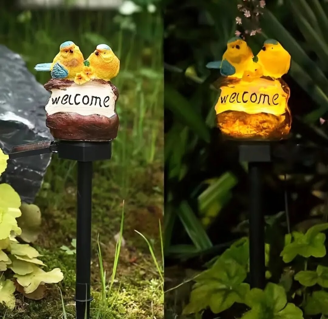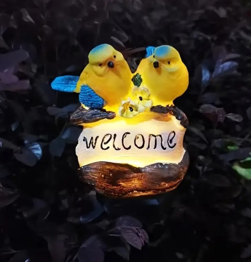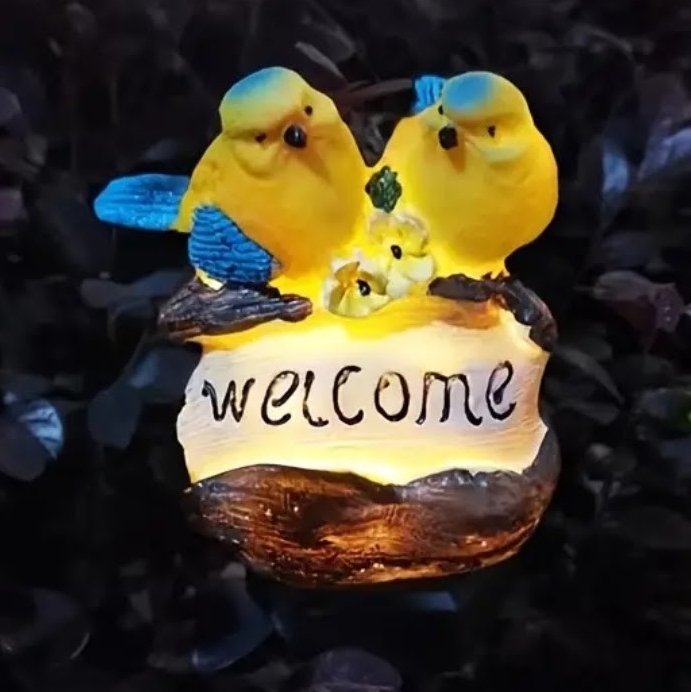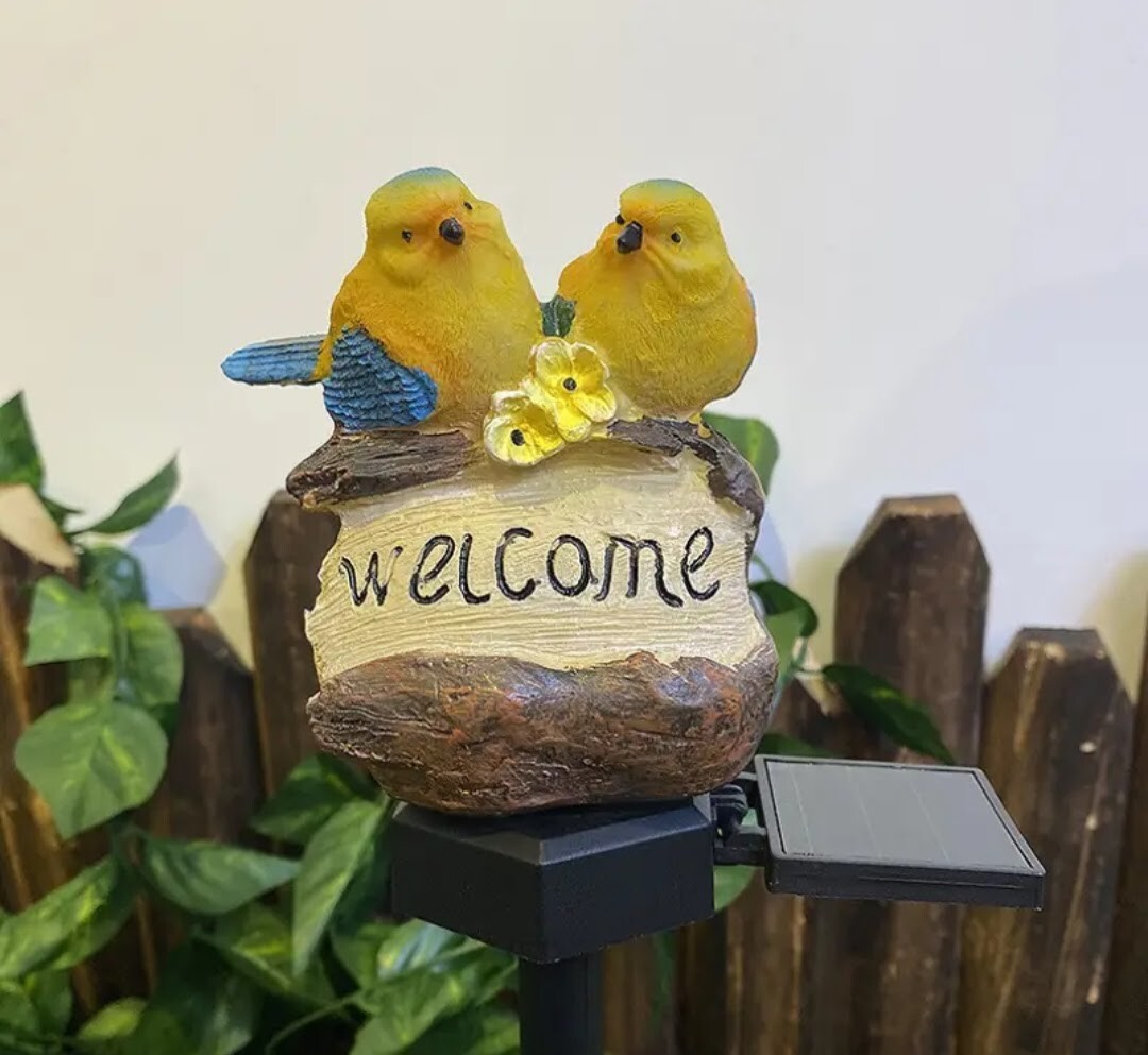 かわいい鳥さんのwelcomeガーデンソーラーライトです