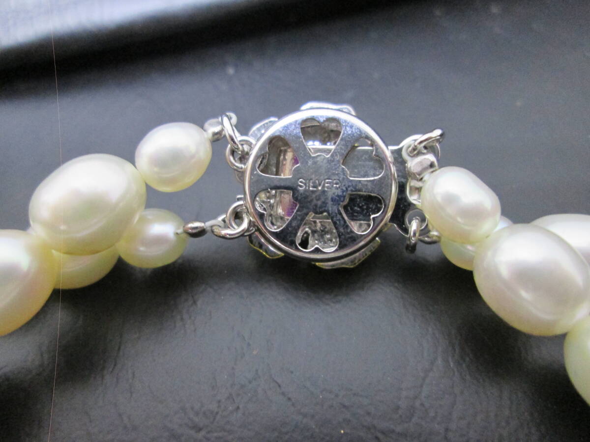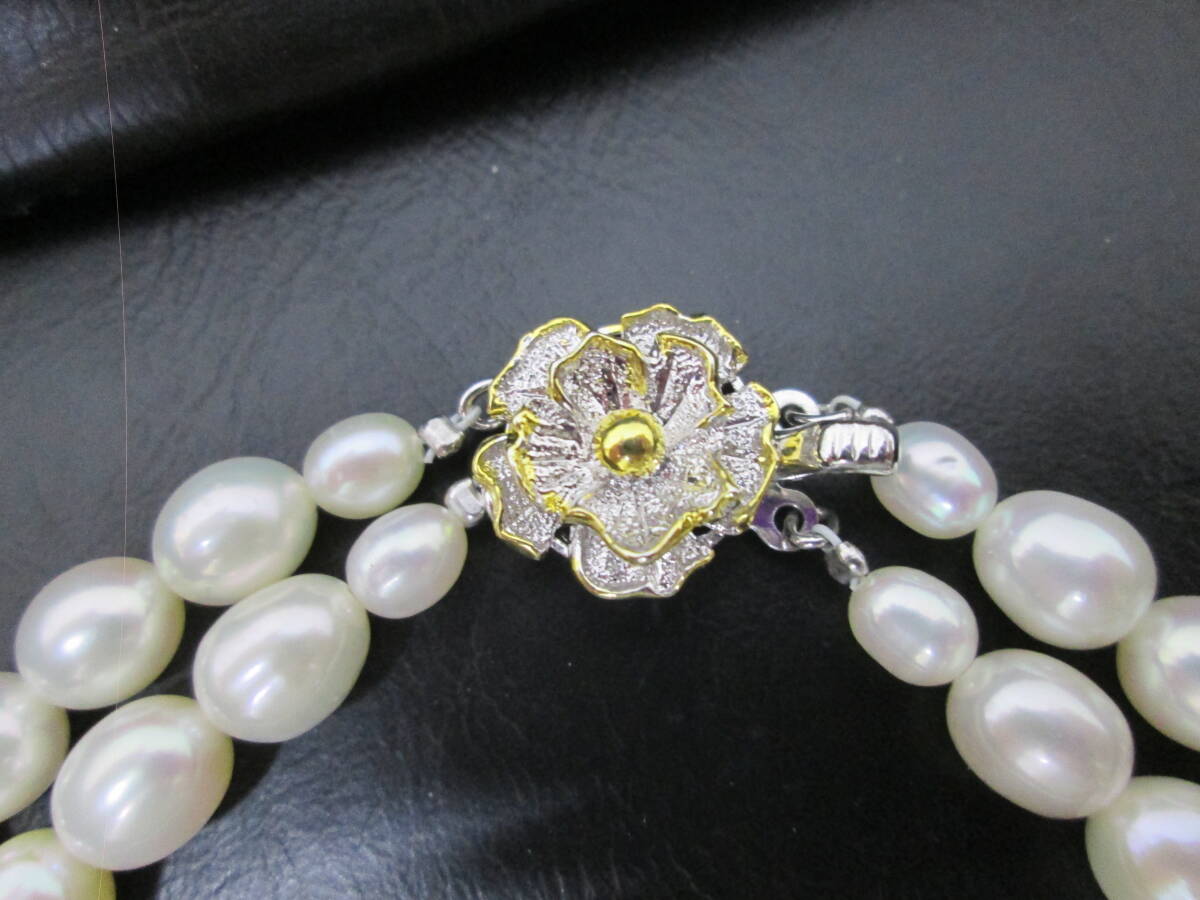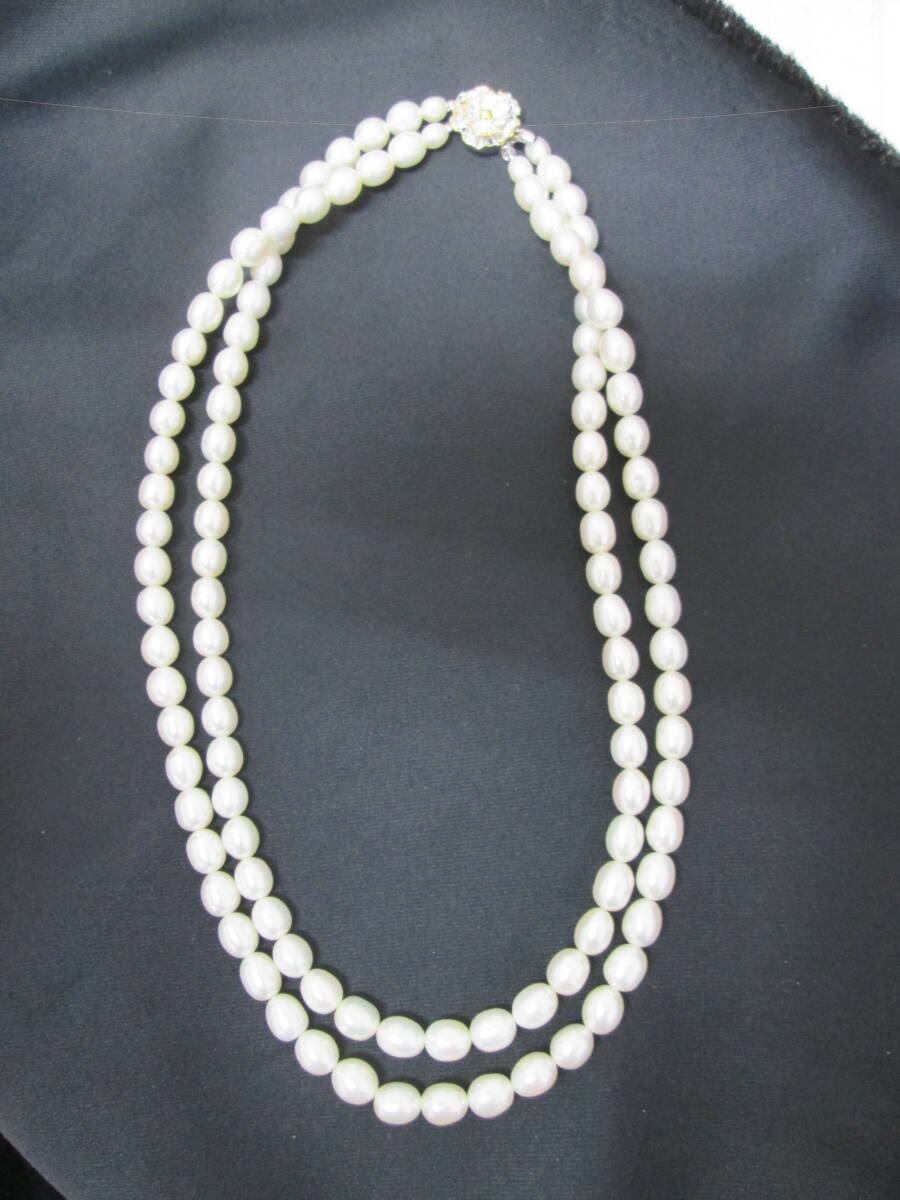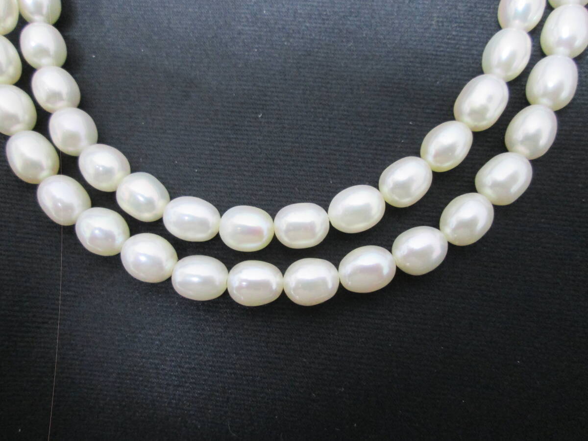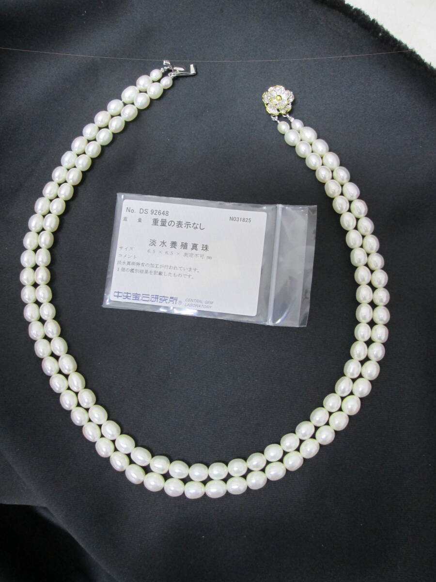 (67)☆淡水パール 2連ネックレス 留具 SILVER刻印 淡水養殖真珠 全長約44cm 珠径約6.5mm 約55g 中央宝石研究所 ソーティング付き 美品