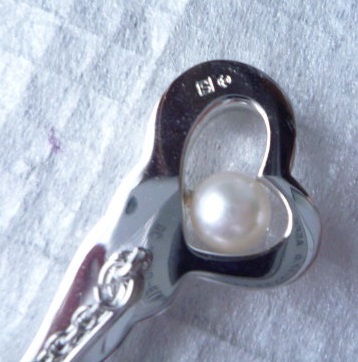 ハートモチーフの中に、小さ目の約7mmのあこや真珠1粒ございます。