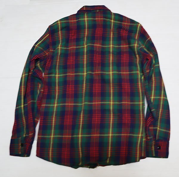 70-80年代頃のアメリカ製(表記は読めませんが)三角タグのPROSTPROOFの織りネルチェックシャツの赤系x緑系他チェックです。
