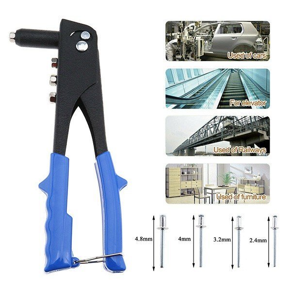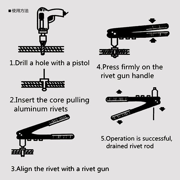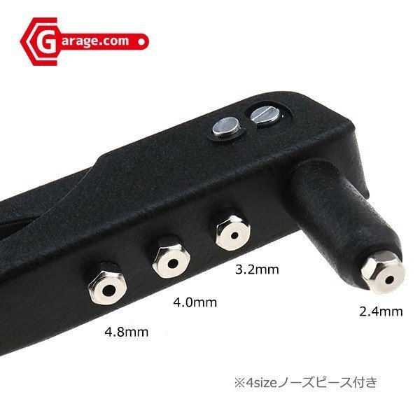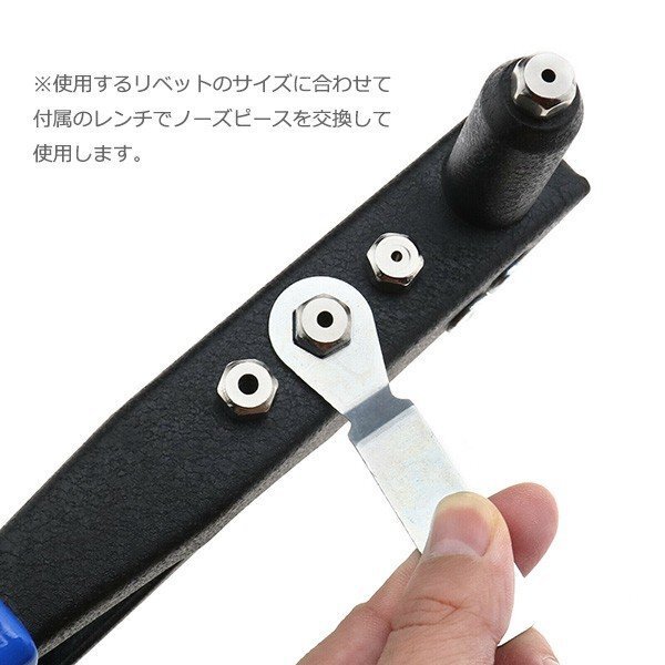 | 商品詳細 | リベットを打ち込むときに使用するDIY仕様のハンドタイプリベッターです。 ボルトナットと違い、容易に取り外すことができないので、半永久的な結合箇所に使用します。 [使用可能リベット(材質:フランジ/シャフト)]:アルミ/スチール、アルミ/アルミ ■商品仕様 ・全 長:235mm ・重 量:500g ・適用リベット材質:アルミニウム、銅 ・適用リベット径:φ2.4、3.2、4.0、4.8mm、 ・付属品:本体、2.4mmノーズピース×1(本体装着済み)、φ3.2mmノーズピース×1、φ4.0mmノーズピース×1、φ4.8mmノーズピース×1、レンチ×1、リベットx40本 注意事項: ※フランジとシャフトの材質によっては、使用できないリベットがあります。 ※必ず、リベットのサイズに合った下穴を開けてください。 |