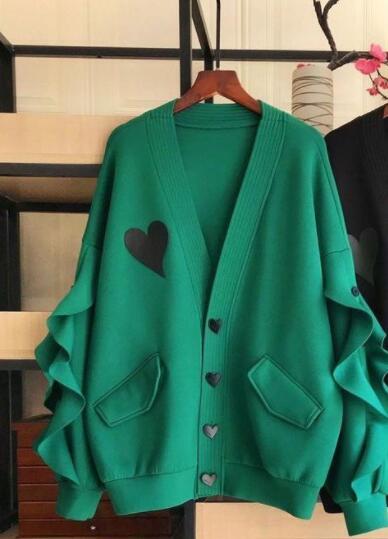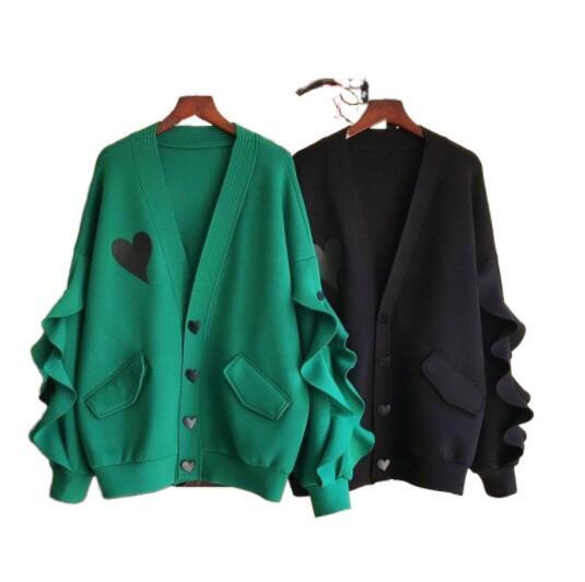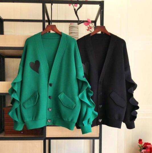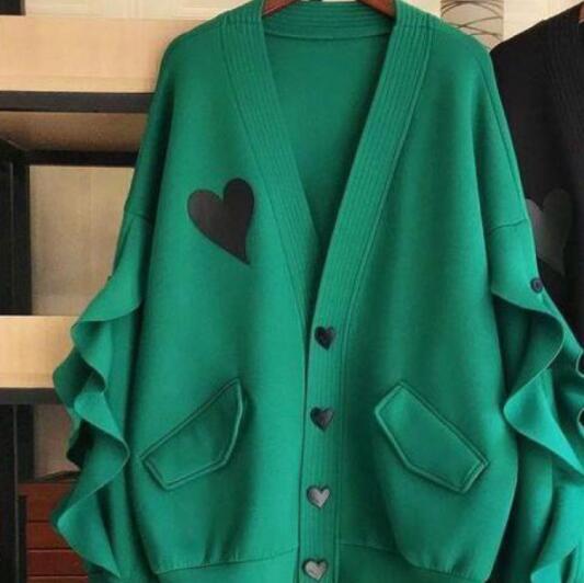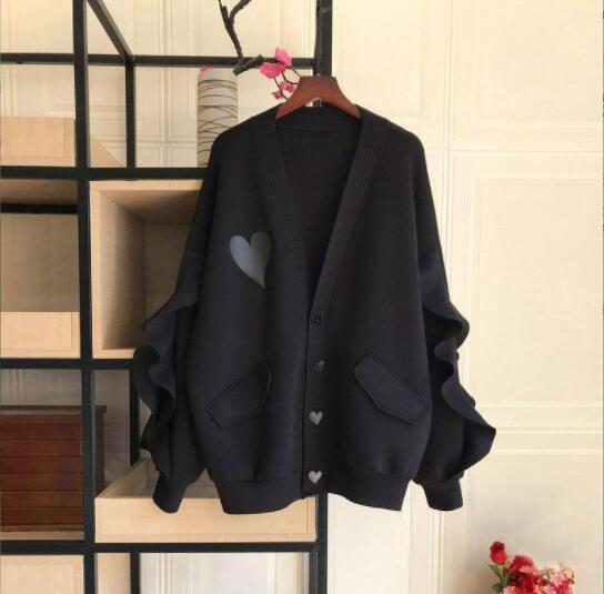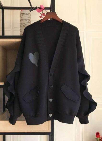 大人気カーディガン レディース トップス 羽織 前開き 長袖 萌袖 Vネック フリル シンプル カジュアル こなれ感 ルーズ(2色L-4XL)
