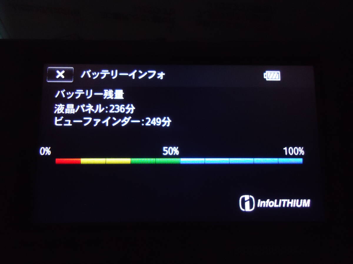 HXR-NX30Jにてフル充電した場合のバッテリーインフォの写真を参照ください。