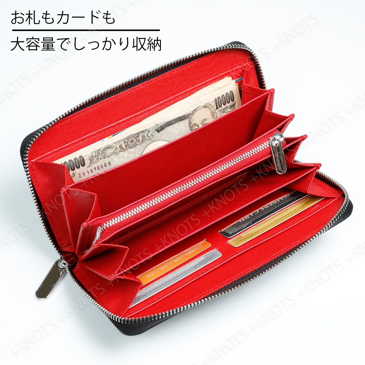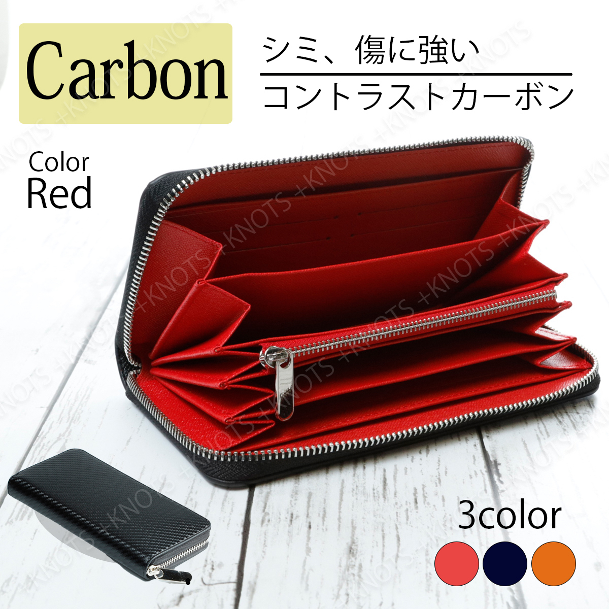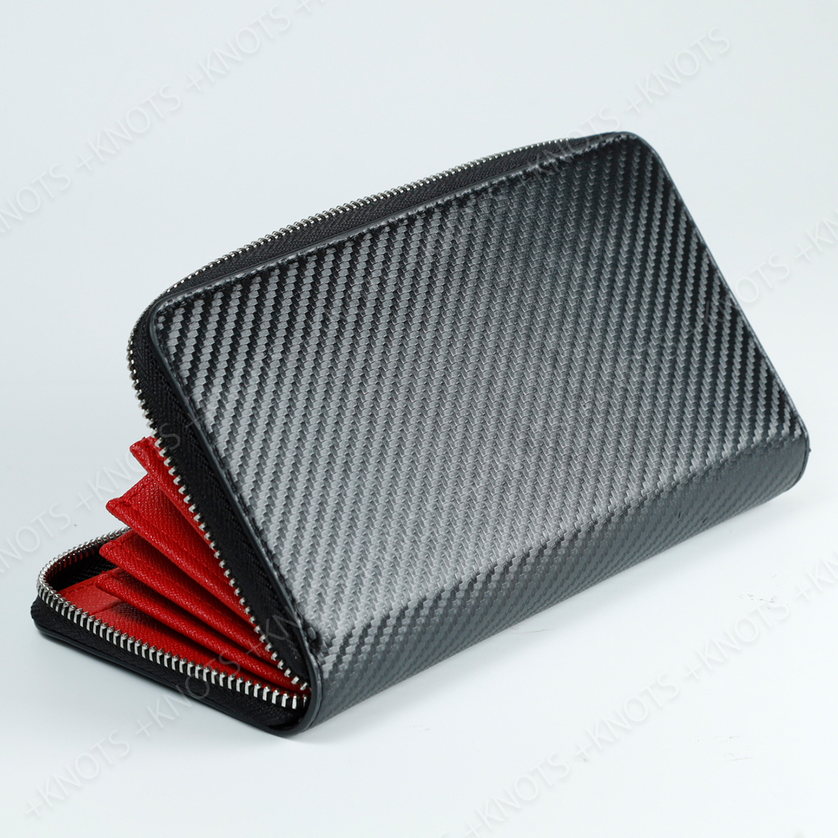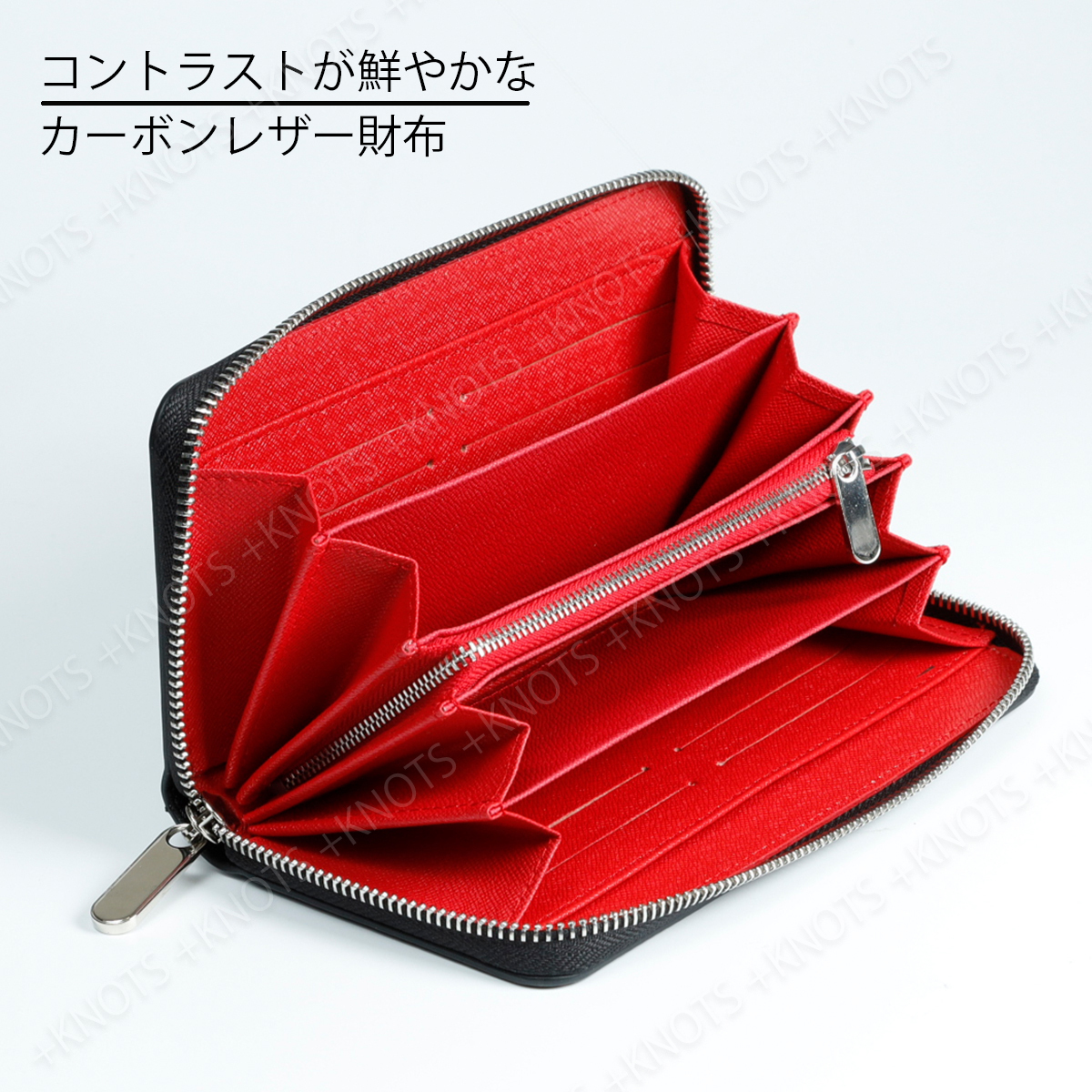 長財布 メンズ カーボンレザー★ブラック+レッド★大容量小銭入れ シンプル ラウンドファスナー ジップ レディース 本革 レザーa236