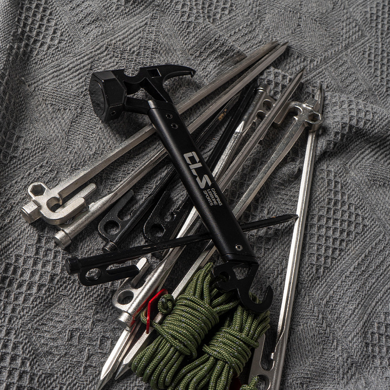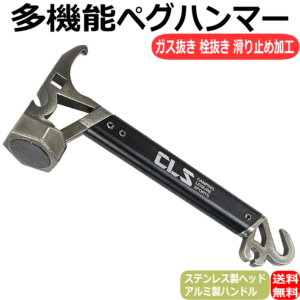 ペグハンマー テントハンマー 4in1多機能 ガス抜き 栓抜き 2WAYペグ抜き 滑り止め加工 ステンレス製ヘッド アルミ製ハンドル