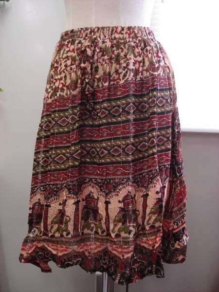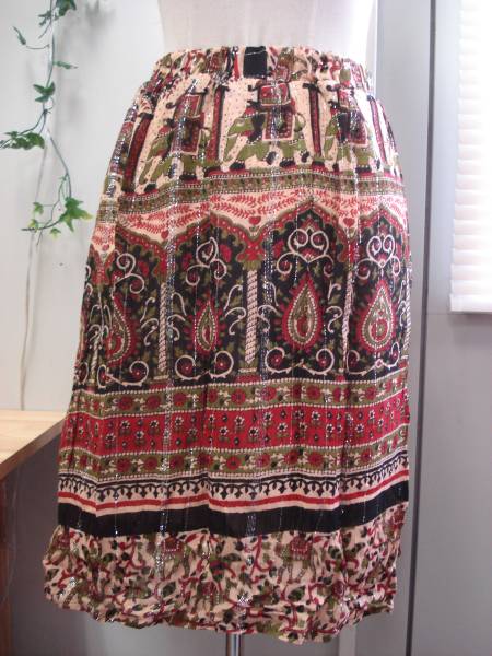 タイ製のラメの入ったエキゾチックなデザイン生地を使用したスカートになります。