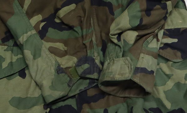 アメリカ買い付けの90年代頃の米軍実物M-65ミリタリジャケットのウッドランドカモです。