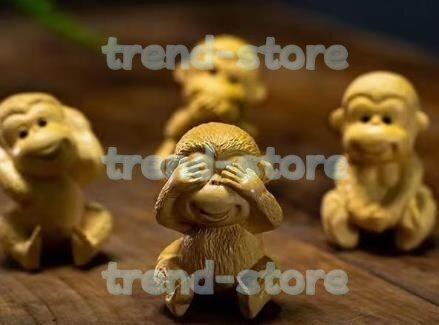 この置物は「見ざる、聞かざる、言わざる、不動」を表し、細部まで丁寧に作られました。