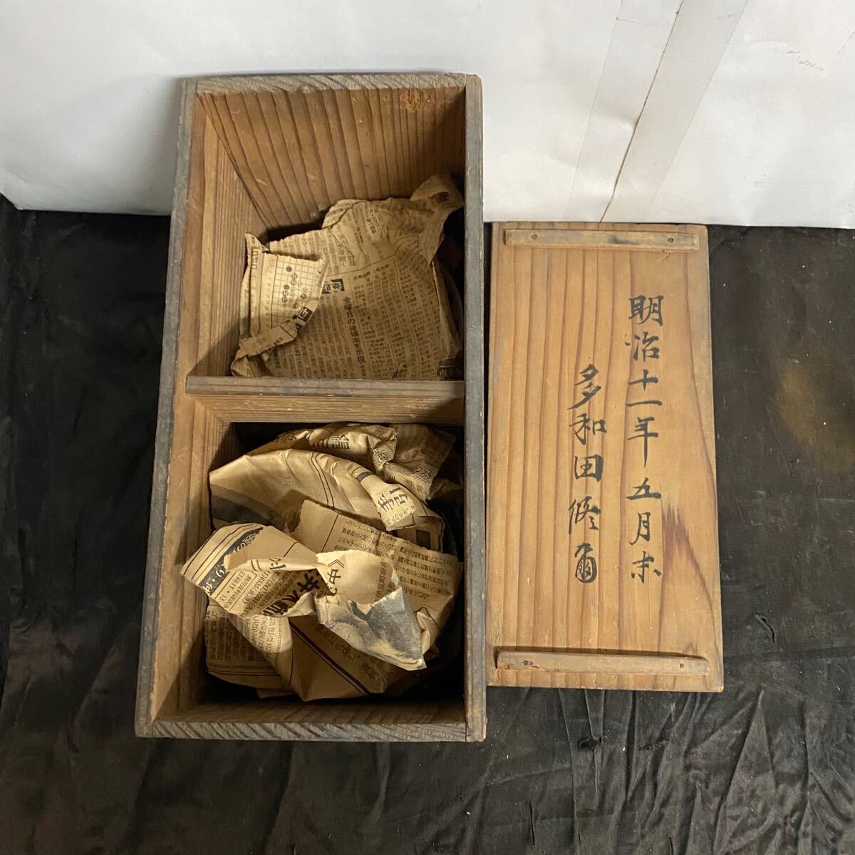 古い食器 木箱付き 小皿 11枚 陶器 和食器 アンティーク ヴィンテージ 年代物 詳細不明