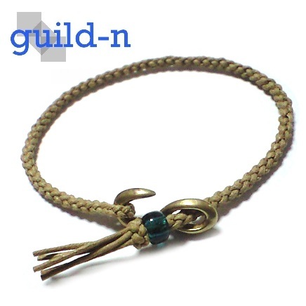【guild-n ★ 麻色 真鍮 ブラス フック ワックスコード アンクレット ブレスレット ミサンガ メンズ レディース 両用 サイズオーダー可】