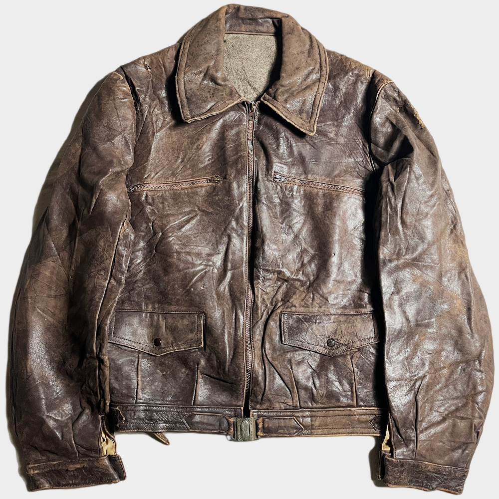 通称 : ハルトマンジャケット呼ばれる人気レザージャケット!推定40年代頃の物と思われる、フレンチレザーサイクリスト/モーターサイクルジャケットが入荷して参りました。