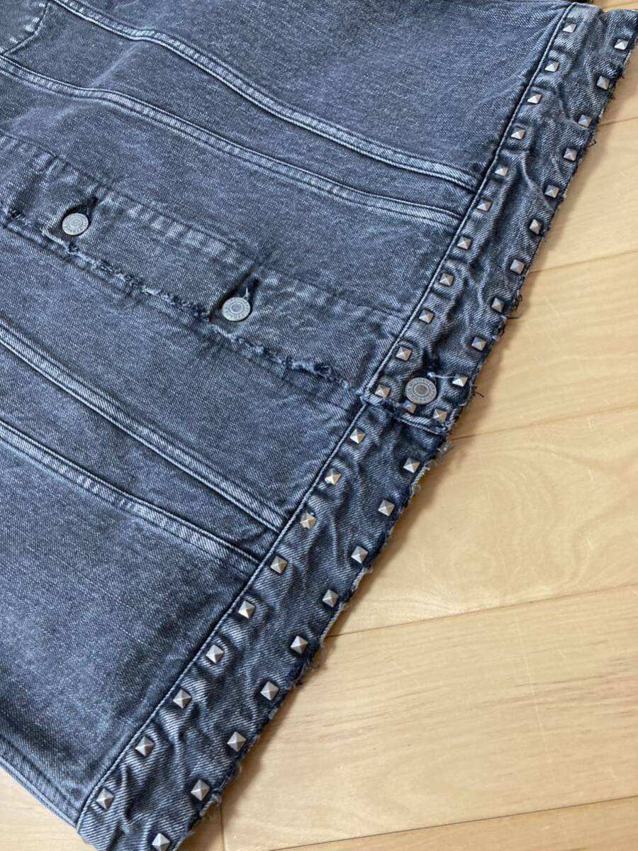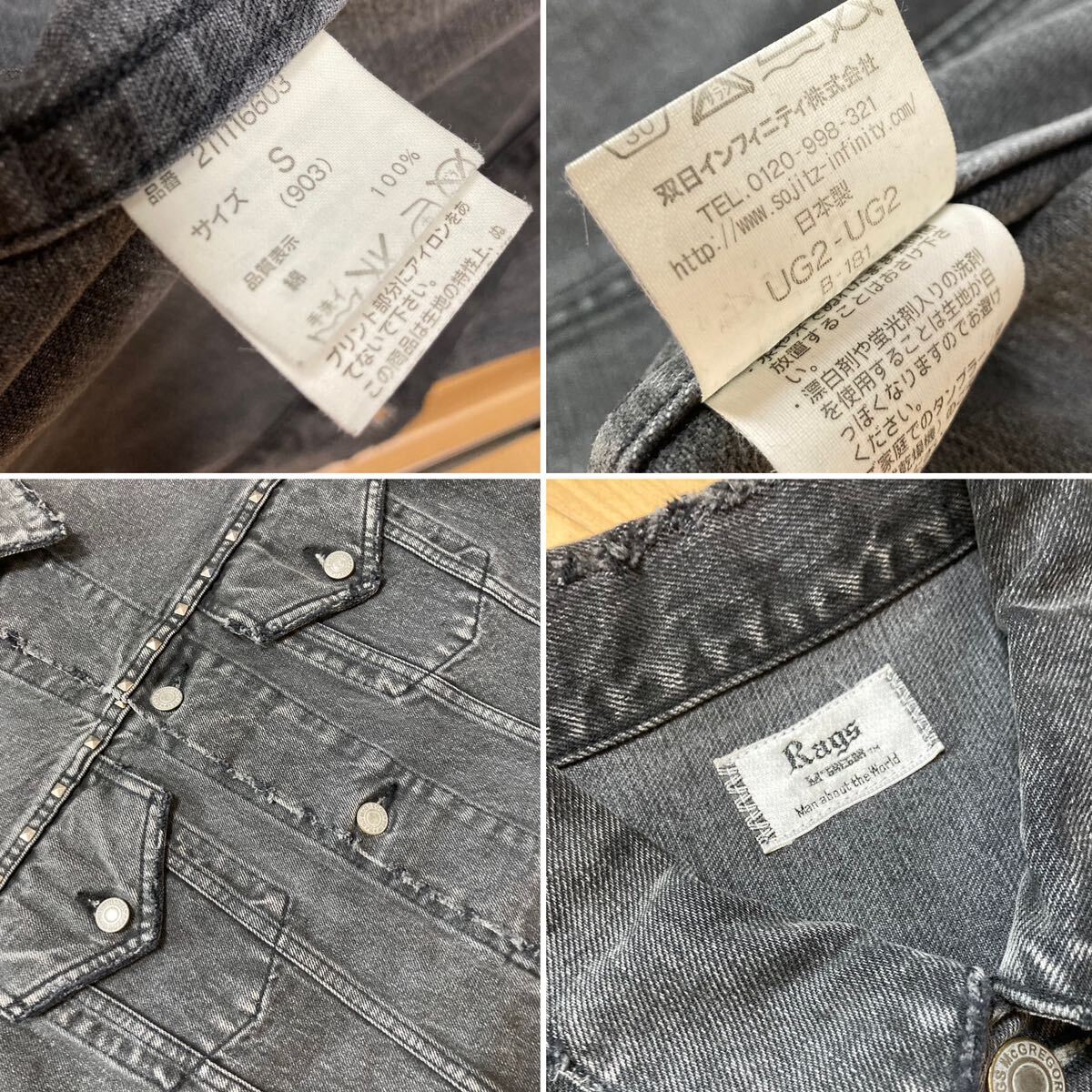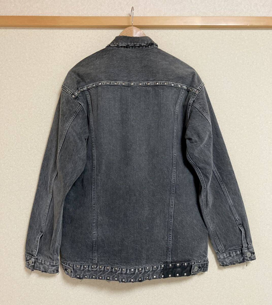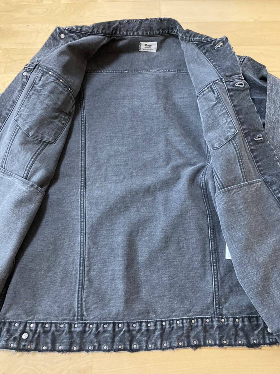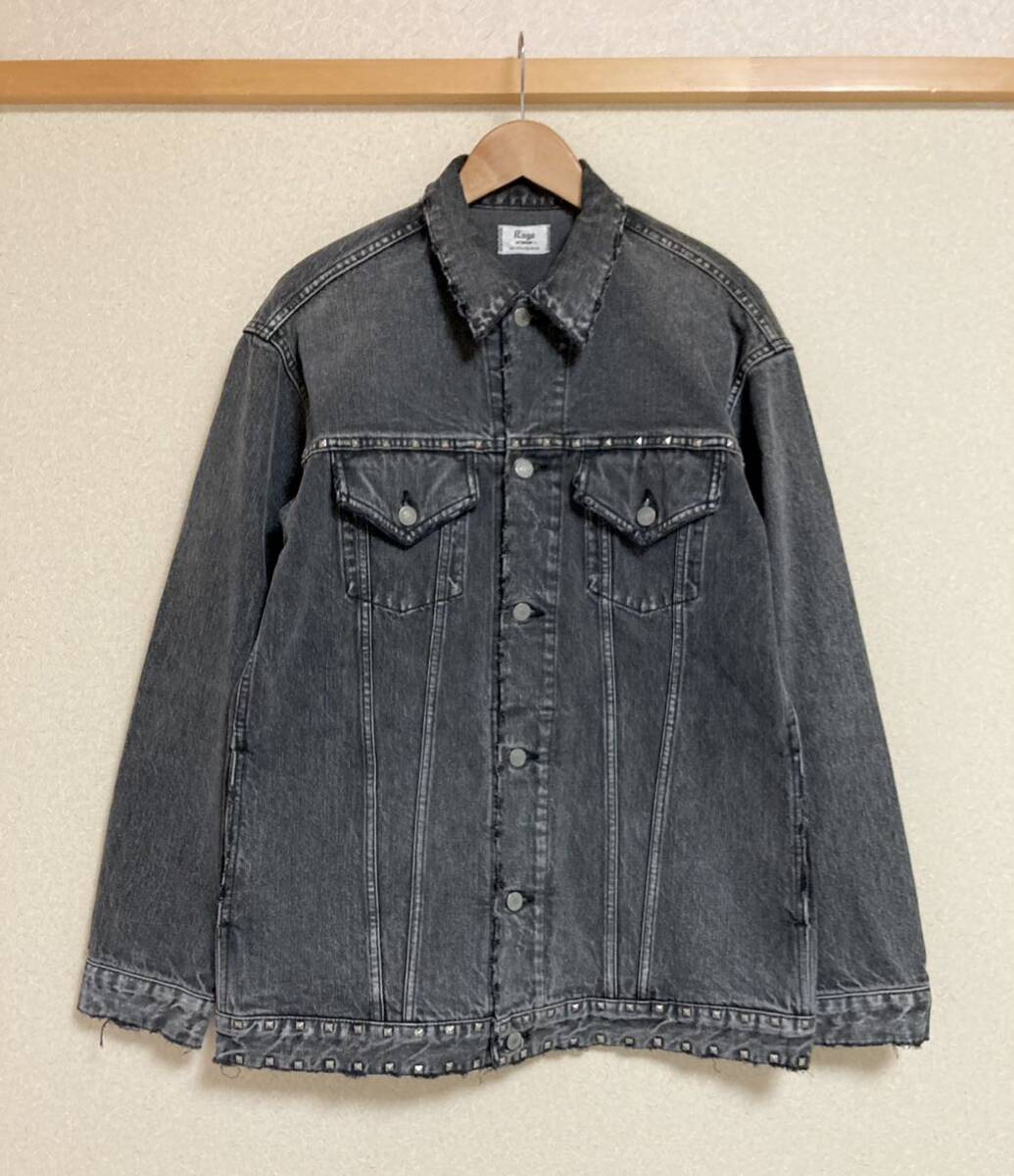 美品☆[Rags McGREGOR] 16AW 定価74,800 STUDS LONG DENIM JKT オーバーサイズ スタッズ ロングデニムジャケット S グレー 211116603 日本製 ラグスマックレガー
