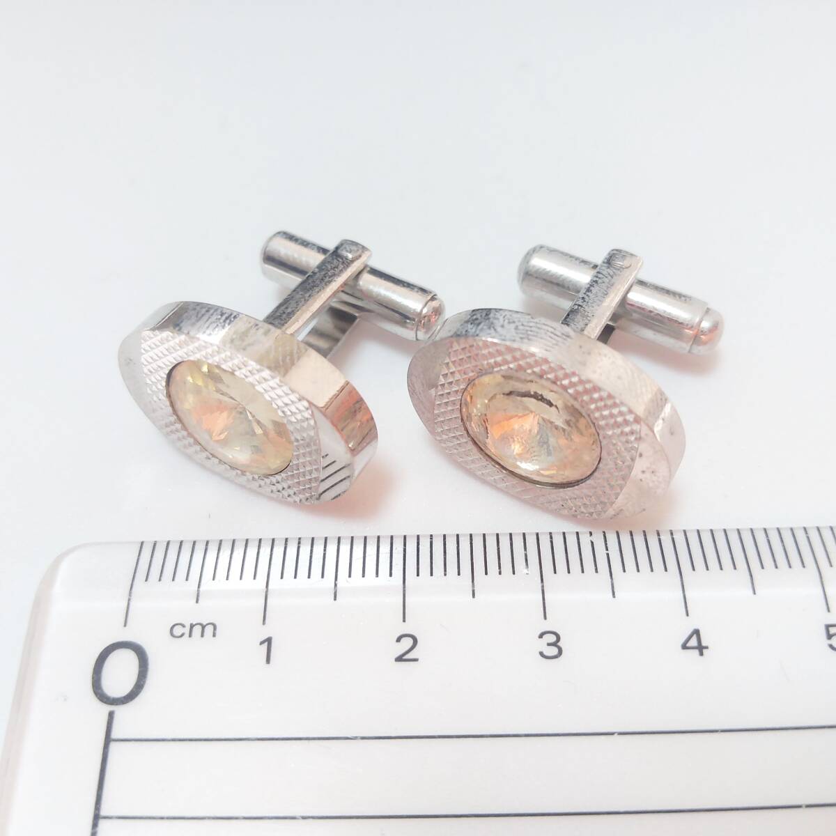 ◆CF37/カフリンクス/カフスボタン/シルバー/レバー式/スウィヴル式 状態難 装飾 ラインストーン アクセサリー 送料無料