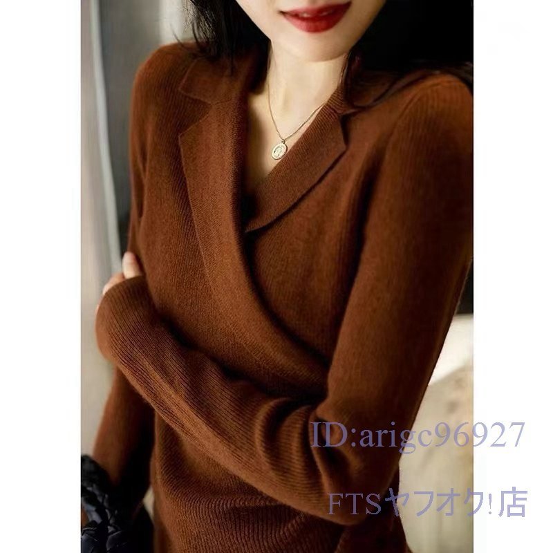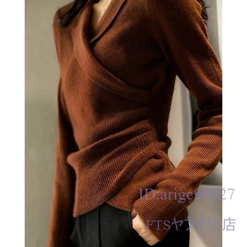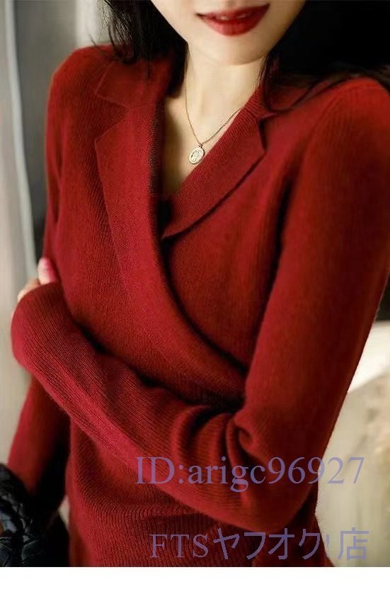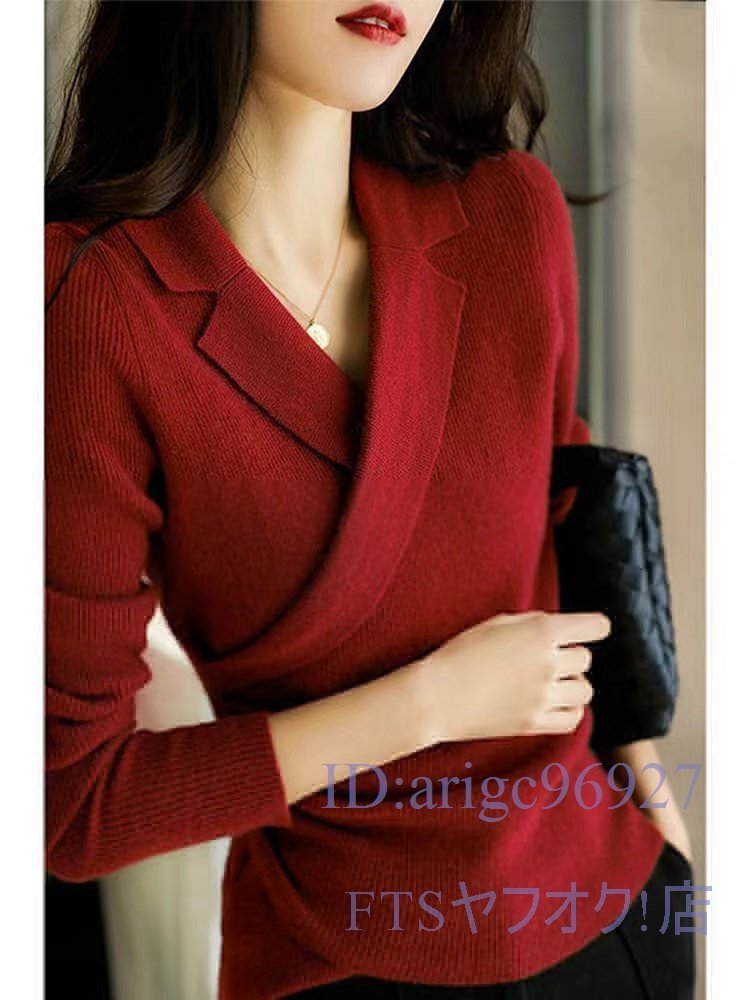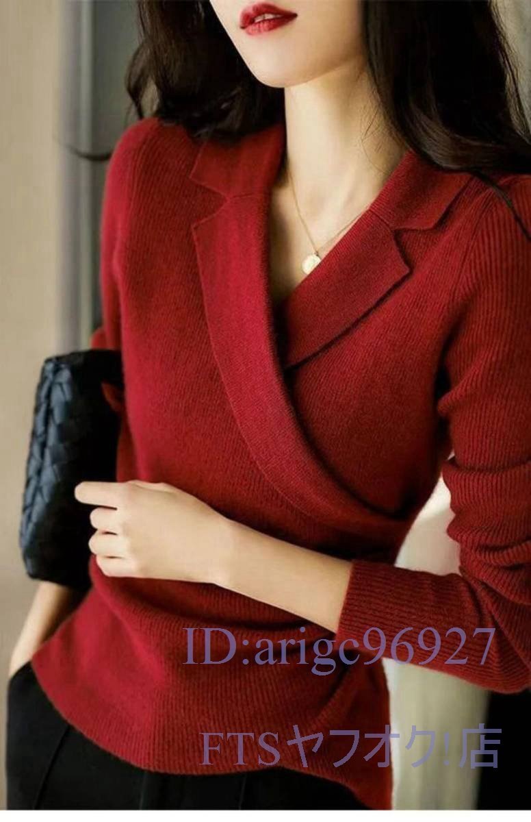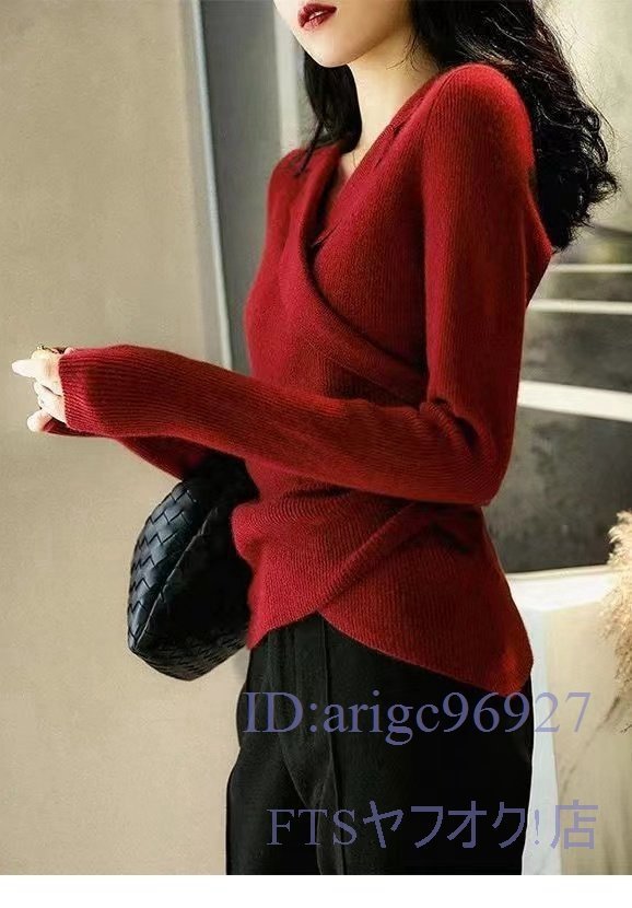 V436☆新品Fサイズ?秋冬 優雅で ゆったり Vネック 長袖 ニットトップス 着やせ ストレッチ 20304050代 ニットセーター * 赤