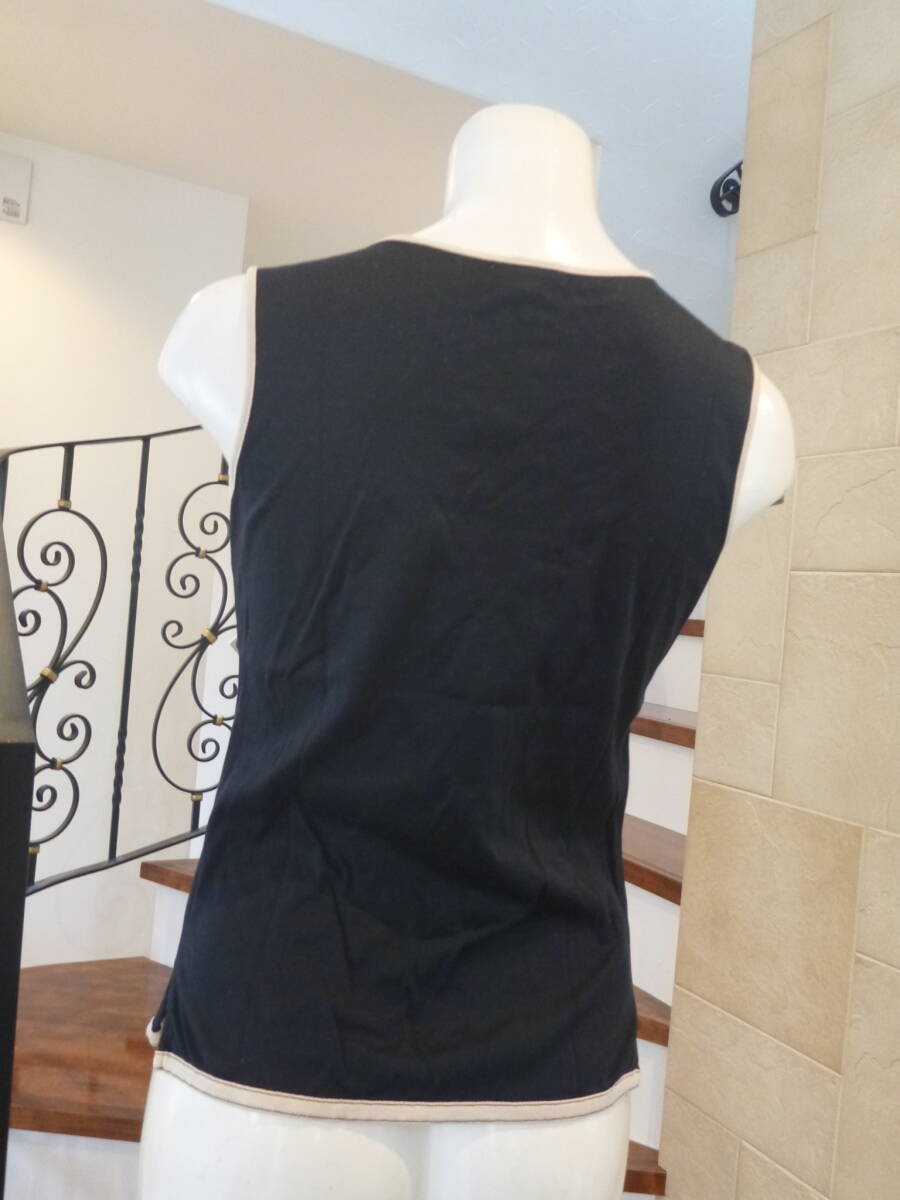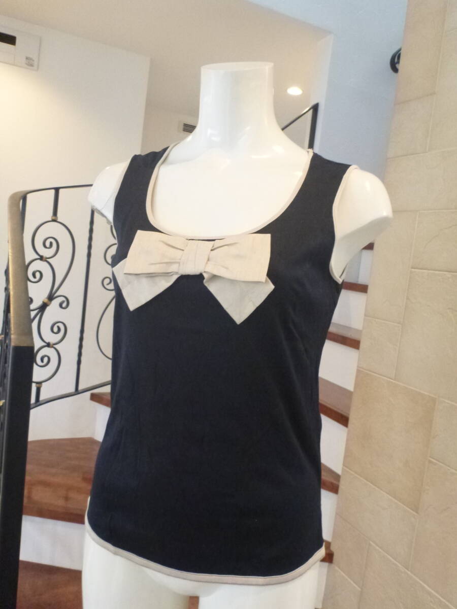 美品 TO BE CHIC(トゥービーシック) ★黒×ベージュ バイカラー リボン ノースーブカットソー Ⅱ M相当