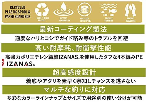 0.6号 (12lb)・ネオンブルー 0.6号 RAP150PE06NB・・Style:0.6号 (12lb)・巻数:150m・号数0.6号 (12lb)・ラインカラー:ネオンブルー・素材:PEライン ( IZANAS 使用 ) / 4本撚り仕様・リサイクルエコパッケージ&リサイクルスプール採用初心者の方からベテランアングラーまで安心して使え、マルチな釣りに対応できる「タフネスで操作性抜群」な新シリーズPEライン「ラップ ライン (RAP LINE) PE 」がラパラより登場! 東洋紡の「超高強力ポリエチレン繊維 IZANAS (イザナス)」を使用した4本撚り仕様にすることで高い耐摩耗性と耐衝撃性能を実現! コーティングには「最新コーティング製法」を採用し、適度なハリとコシでガイド絡み等のトラブルを回避! 超高感度設計で着底やアタリを素早く察知しチャンスを逃さない! リサイクルエコパッケージ&リサイクルスプールを採用し、環境問題にも配慮した設計にしております! カラーは ・【ネオンライム】時間、場所問わずに視認性が高く、あらゆる釣りで使えるスタンダードカラー! ・【ネオンブルー】マズメ時でもしっかりと見える視認性バツグン! しっかりと存在感をアピール! ・【ネオンピンク】ライトゲームスペック用に100mをラインナップ。夜の常夜灯下でもラインの位置が把握しやすい。 ・【マルチカラー】1m&5m単位にマーキング。10m毎に5色分け! 船釣りなどにもおススメなマルチカラー! の多彩なカラーラインラップとサイズ展開で、用途別の使い分けを可能にし、マルチな釣りにも対応したタフネスPEシリーズ!