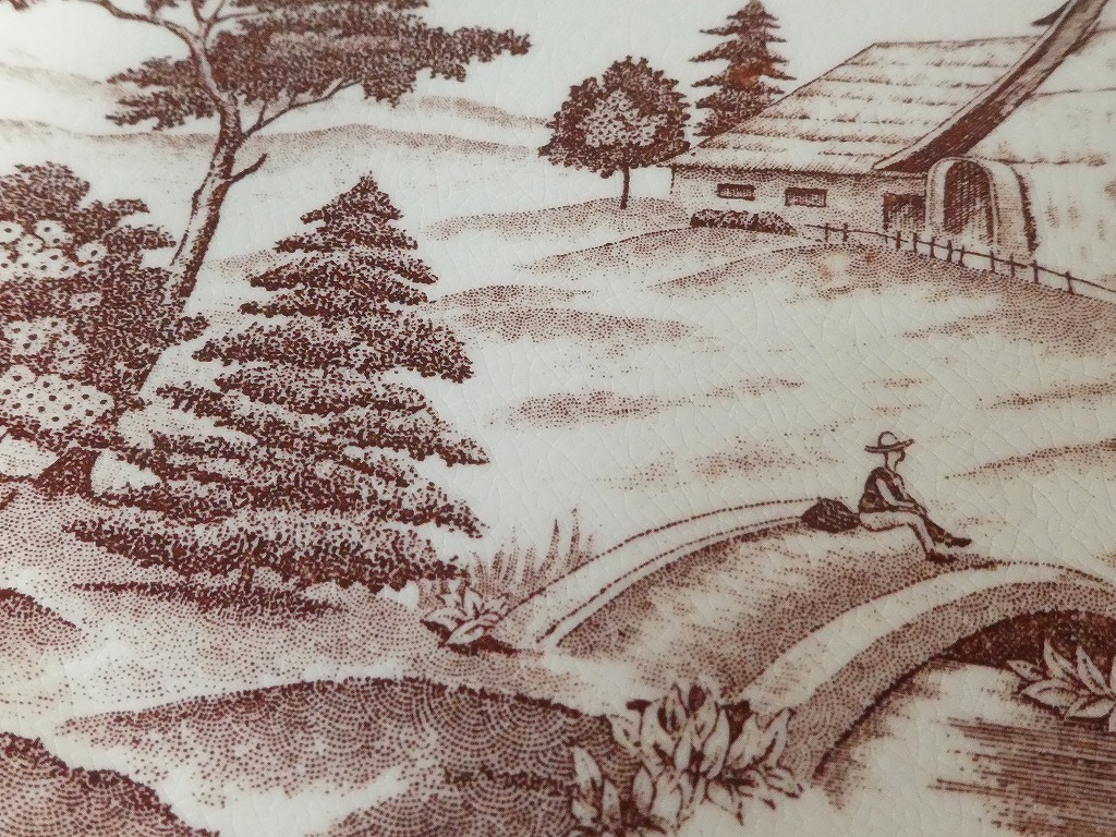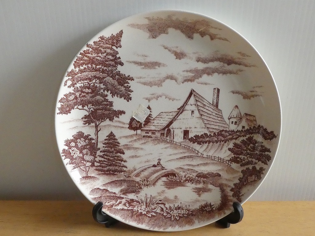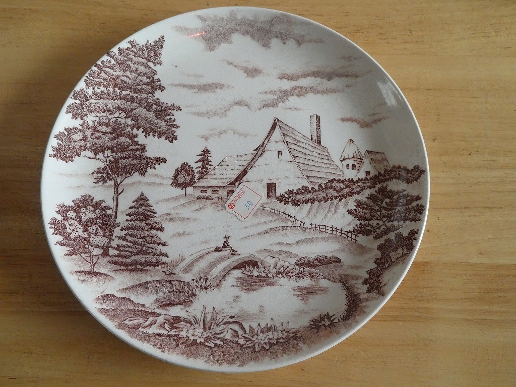 ●●昭和レトロ 風景画 大皿 24.5㎝ プレート 皿 3枚 デットストック ヴィンテージ 日本製● ●