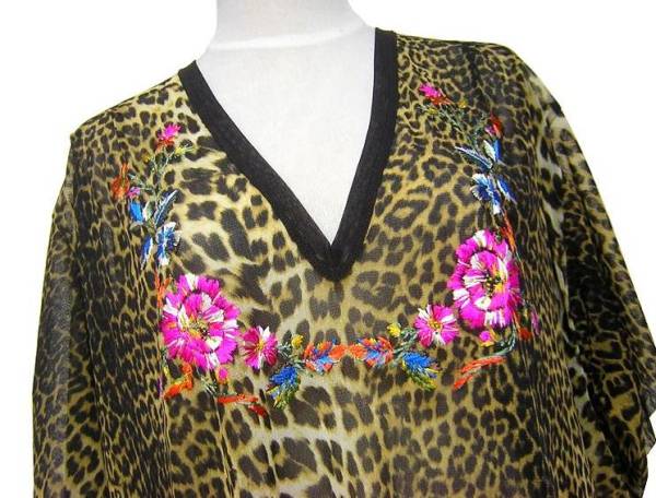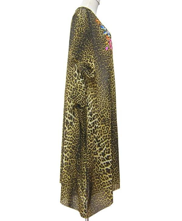 Jean Paul GAULTIER SOLEIL のイタリア製、 花刺繍レオパードカフタンドレスでございます。 伸縮性あり/透け感あり | |