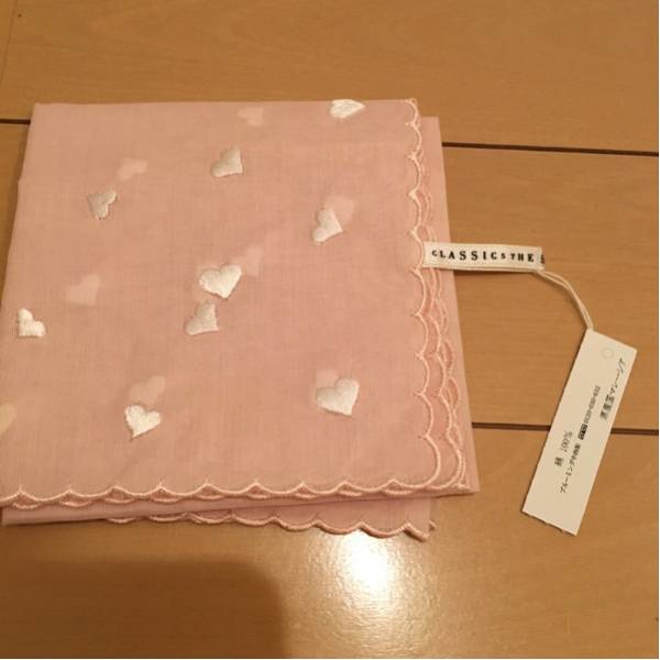薄桜色の生地にハートが刺繍されていてとても上品で素敵なハンカチです。