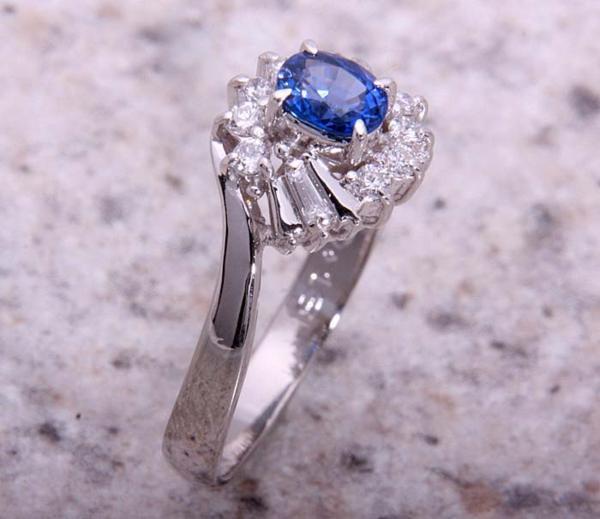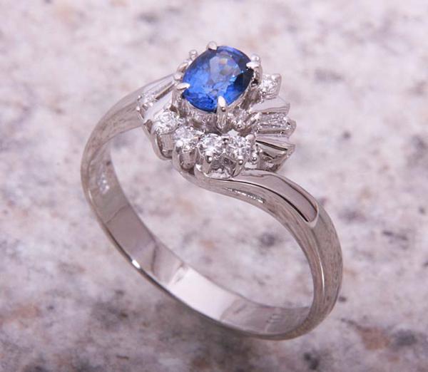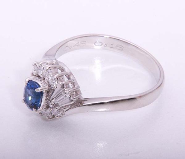 《質屋出品》Pt900★天然サファイア+ダイアモンドリング★C-3845