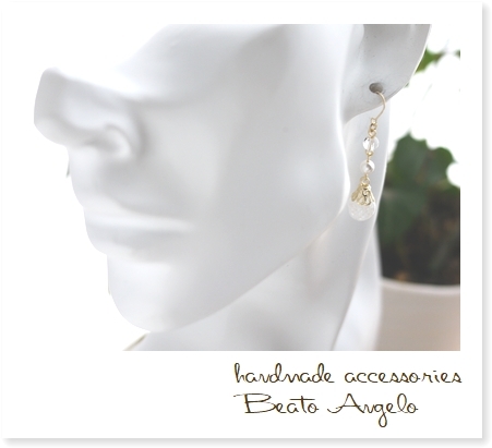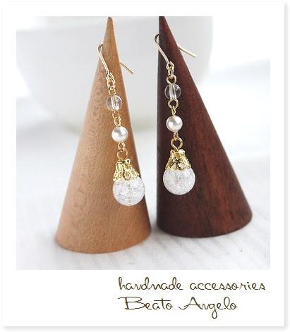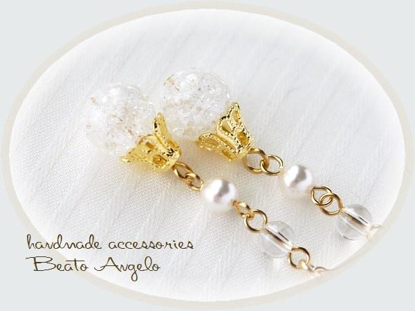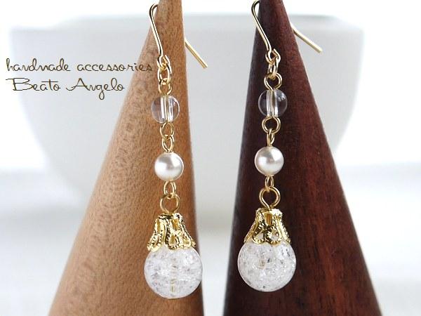 ■+angelo+天然石クラック水晶とクリスタルのピアス(p-010)G ns003 夏 ホワイト チタン 樹脂 イヤリング