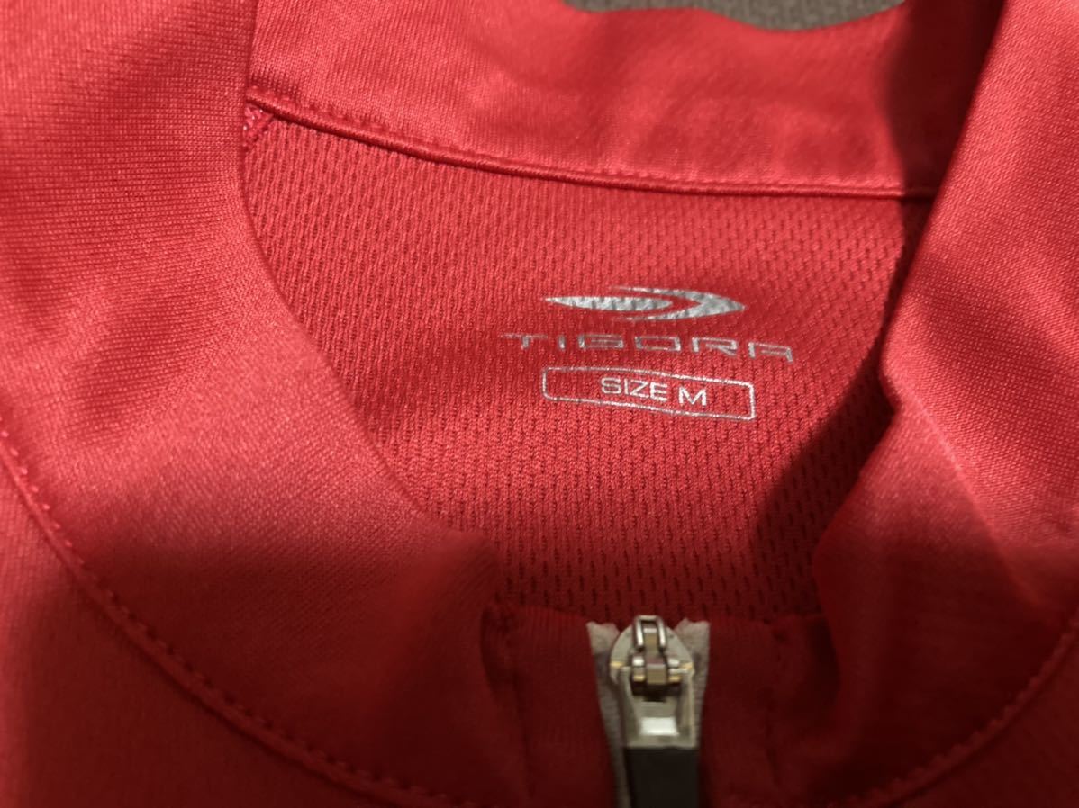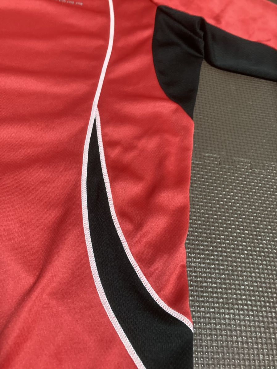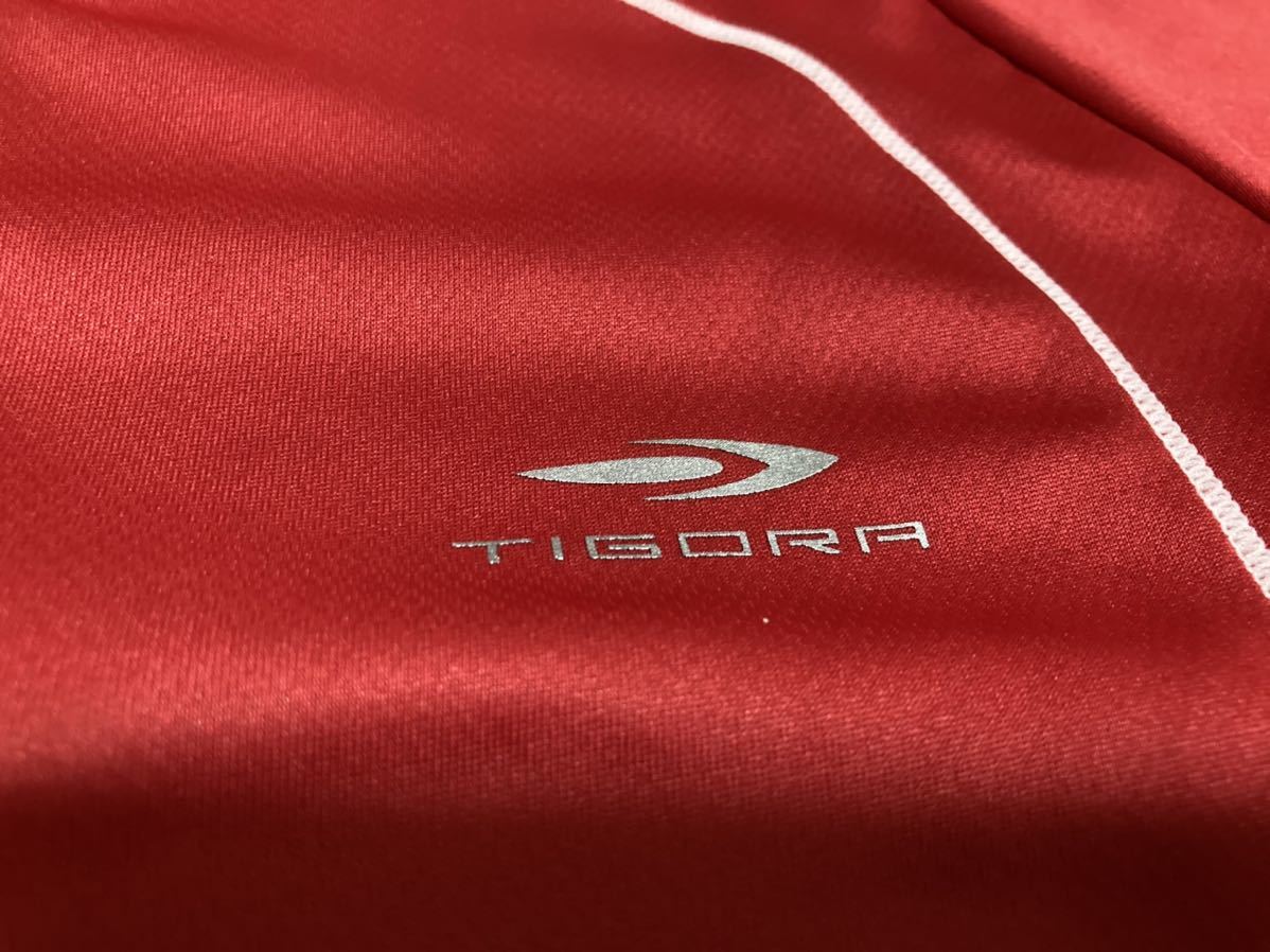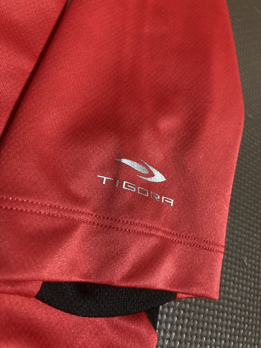 超美品TIGORA赤、黒、白、ロゴシルバー半袖ストレッチトップス