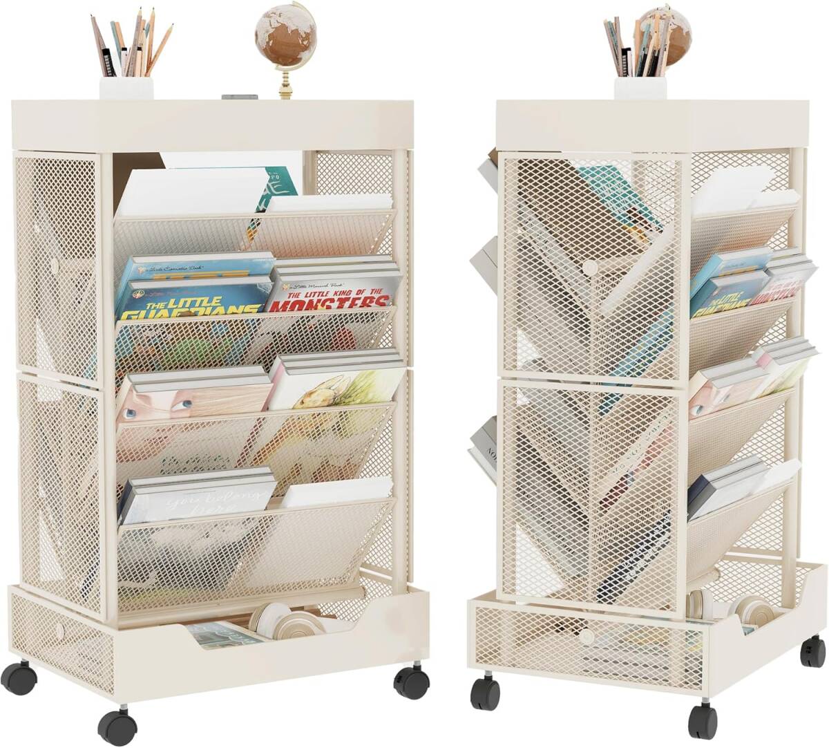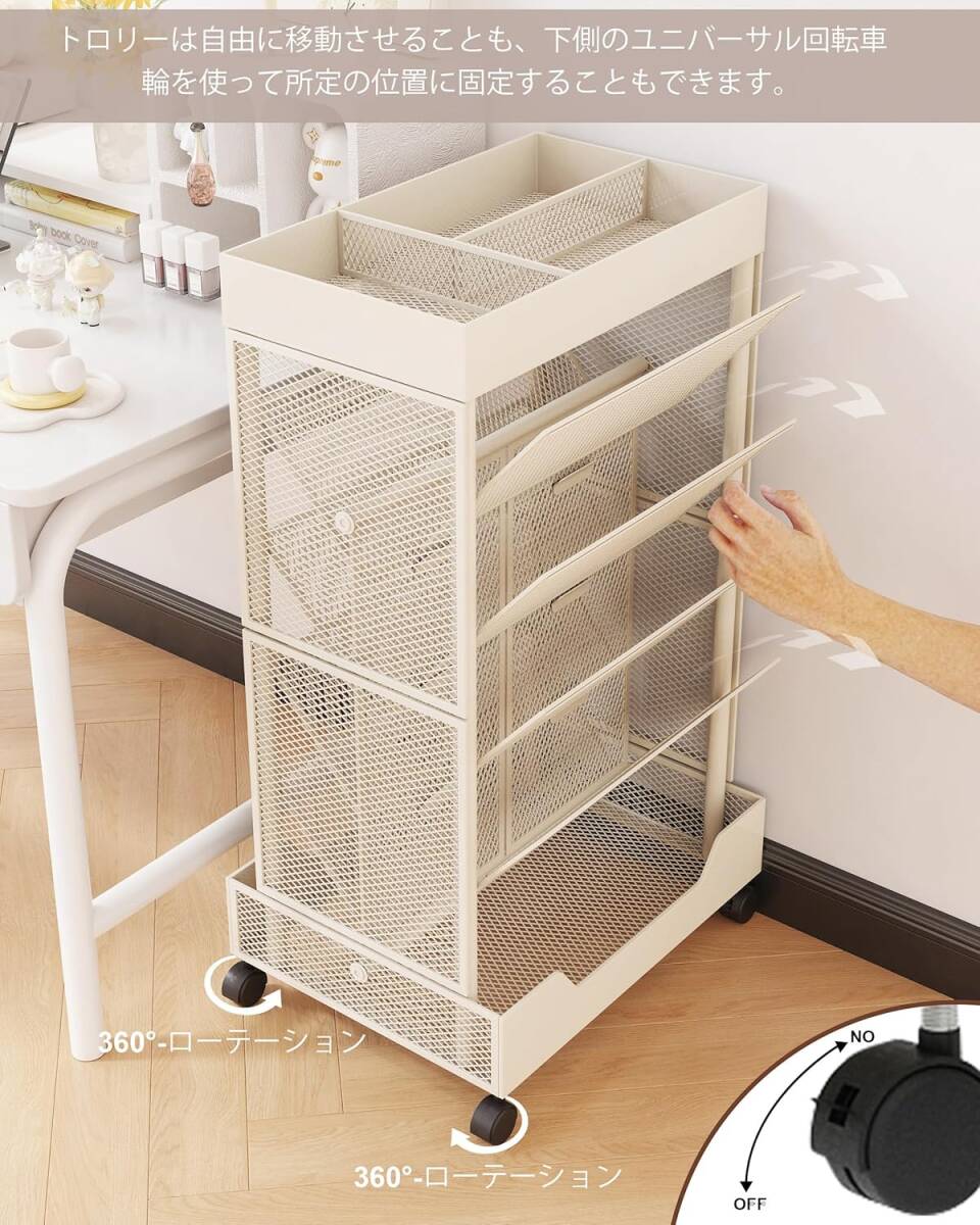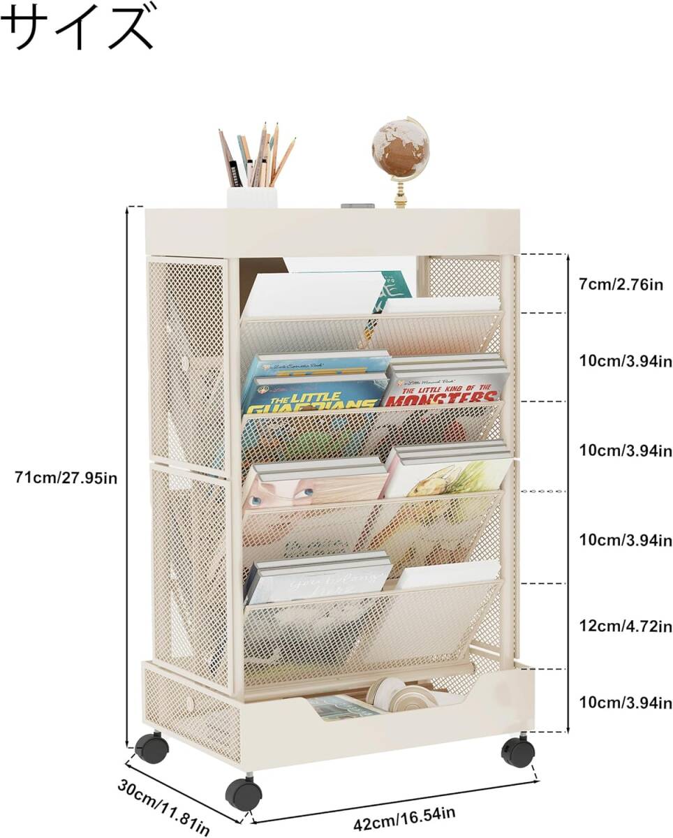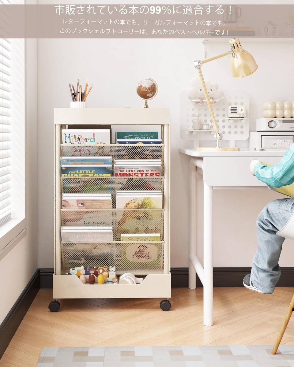 ホワイト色 Ornestia 本棚 スリム キャスター付き大容量 文庫本・漫画・教科書収納 コミックラック ファイルワゴン 棚収納