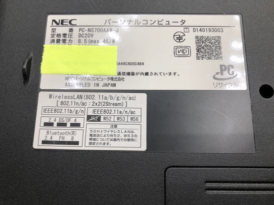 NEC/ノート/SSHD 1000GB/第5世代Core i7/メモリ8GB/WEBカメラ有/OS無/Intel Corporation HD Graphics 5500 32MB