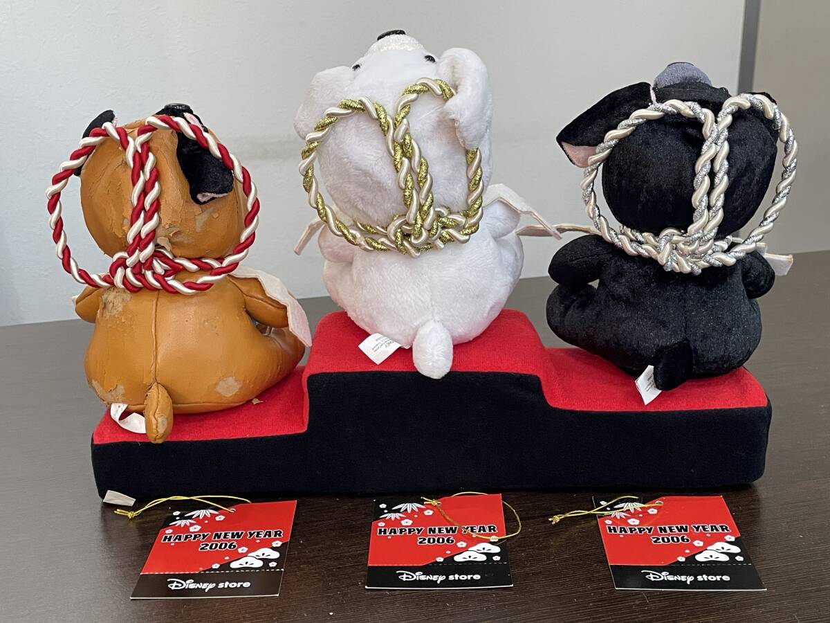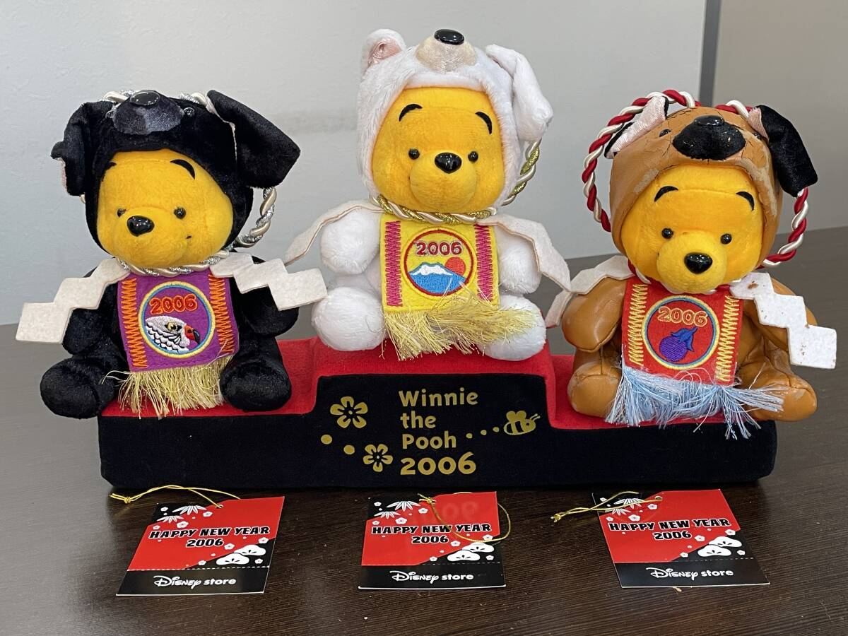 ★【希少品 くまのプーさん 土佐犬 犬 ぬいぐるみ 3種完】Disney ディズニー 戌年 2006年 干支のプーさん 非売品 専用飾り台付★難有品