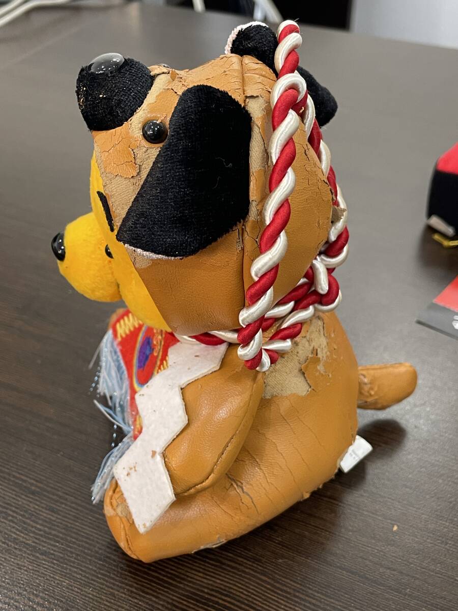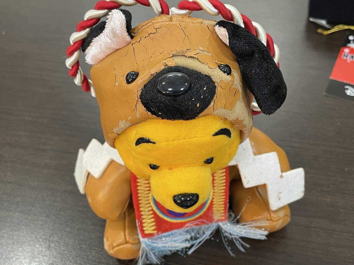 茶色いぬいぐるみの表面が経年劣化でボロボロです。