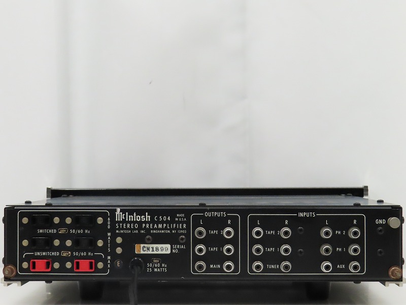 ■メーカー : McIntosh ■型番 : C504 ■外径寸法 : W406×H92×D368mm ■重量 : 6.4kg 【商品の状態 当店での確認内容】 基本動作は確認できておりますが、若干接触不良がございます。 前面ガラスに気泡がございます。 「商品の状態」に関しましては当方主観の目安となります。外観などは中古品で個人差もありますので詳細は画像にてご判断ください。 画像にて不明な点はご質問下さい。 出品商品は画像のものですべてになります。画像に写っているもの以外は付属いたしません。 ※注意※ ヤフオクのシステム上、送料表記が送料未定となっておりますが、送料に関しては全て有償となりますので下記を参照下さい。 【送料 全国一律 2,080 円 沖縄、離島は別途お見積り】 ※送料がお得になるサービスです(下取りシステムのご案内です) ストア決済利用時にクレジットカードやPayPay残高/PayPayクレジットを利用の方は留意点がございますのでこちらを参照上ご利用ください。 当ストアでは商品を安全にお届け出来るよう提携運送会社と協議の上、発泡緩衝材や強度段ボールの使用等 運送会社が指定する梱包方法や資材を採用しております。 より安全にお届け出来るよう商品仕様により梱包サイズが大きくなる場合や個口数が増える事がございます。 【当ストアオークションルールを入札前に必ずご確認ください。】 【落札後の取引手順】 ・落札後は取引ナビにて、必要事項をご入力後、送信ください。 取引終了後48時間(土、日は除く)以内に入力をお願い致します。 ※ご連絡が頂けない場合は落札者様都合でのキャンセルとさせていただきます。 ・落札代金(商品代金+消費税+送料)の入金をお願い致します。 ※大型商品の場合は送料確定後の決済となる為取引ナビを入力頂き、当ストアより送料のご案内が来るまでお待ちください。(土曜、日曜、祝日の場合は翌営業日より順次ご案内いたします) ・お支払い方法はクレジットカード/PayPay残高/PayPayクレジット/PayPay銀行/ゆうちょ銀行のみです。 ※商品代金引換(代引き)のお取り扱いはしておりません。 ※領収証の発行が必要な方はご連絡ください。 ※銀行振込の際の振込手数料はご負担願います。 ・入金確認後に出荷手配を致します。 (原則入金確認後3営業日以内に発送いたしますが、大型や重量のある製品はお時間をいただく場合もございます。) ・発送は当店指定の運送会社の元払いのみでの発送となります。 ※他の運送会社、送料代引き等は致しかねます。 ※落札者様ご自身での運送会社の手配いただく事も可能ですが荷物事故の責任の所在の問題上、梱包は致しかねます。 ※店頭にお越し頂き手渡しも可能(福岡市早良区)です。ご希望の方はご落札後にご連絡下さい。 ・大型/重量物商品の送料につきましては商品の特性上、荷降ろし状況等により送料が大きく前後し運送業者に別途見積りが必要な為、早めのお問い合わせにてお見積り上、入札をお願い致します。 【初期不良の保証について】 ・商品到着後の初期動作不良、また配送中の事故による破損、不具合が有る場合は、商品発送後10日以内に当ストアまでご連絡ください。当ストアでは修理での対応を優先させて頂きますが、修理不可の場合は全額返金させて頂きます。 (商品代金+消費税+送料のお支払い頂いた金額となります) 【初期不良の保証の対象外について】 次の場合は保証の対象外となりますのご留意ください ・ジャンク商品、現状商品、難あり商品での出品商品。 ※難あり商品に関しましては動作確認時に一部動作不良が確認された商品になり、記載している動作確認以外にも、動作不良がある可能性もございます。こちらに関しましても保証対象外となりますことをご理解ください。 ・年代物のオーディオなどで、当店にてわからない範囲で部品が交換されている場合 ・楽器類の特殊機材(マイクロスコープ等)での確認までは行っておりません。気になる方は事前にご質問いただくか、入札をお控えください。 ※初期不良に関しましては【商品の状態】に記載のもの、またそれによって起因する動作不良は対象外です。 ※商品発送後10日を過ぎてのご連絡は対応が出来ませんので、商品が到着しましたらお早めに確認をお願い致します。 【メーカー保証の加入・継承】 ・未使用品、展示品やメーカー保証期間が残っている商品に関しまして、メーカー保証の加入、継承が必要な方は、落札後取引ナビ内にて当ストアにお知らせください。商品発送までにご連絡いただけない場合、メーカー保証の手続きを承れない場合があります。 【評価について】 ・評価不要の場合、必ず取引ナビの「要望欄」にてお知らせください。それ以外でご連絡をいただいた場合、対応できない可能性がございます。一度行った評価はシステム上取り消しが行えませんのでご了承ください。 【入札削除・キャンセルについて】 ・入札後はトラブル防止の為いかなる事情がおきましても入札を削除等は致しておりません。 ご検討の上