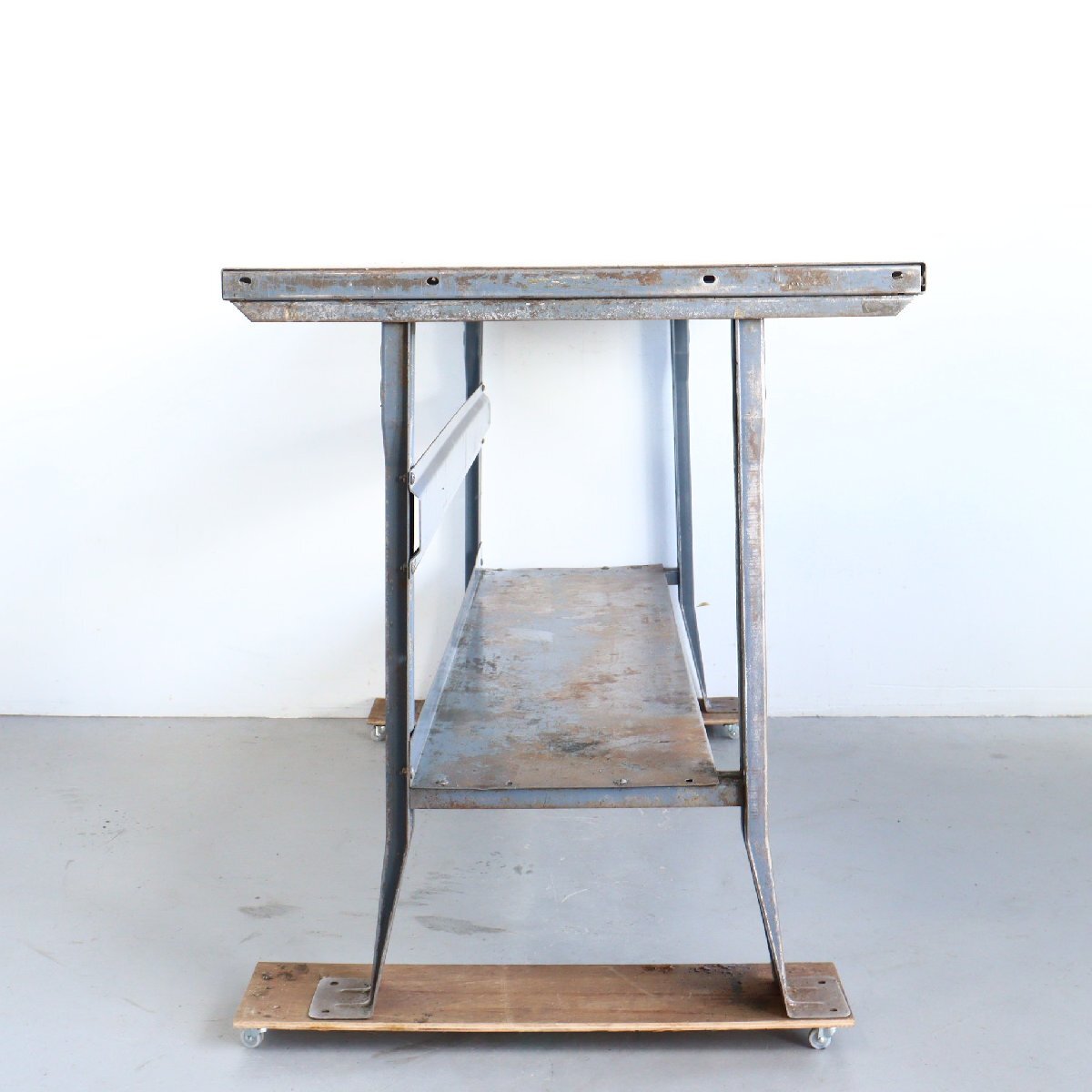 | 商品説明 explanation | アメリカで使用されていた、ヴィンテージの作業台です。 スチール製の頑丈な造りで経年によって良い風合いで、今のモノには出せない存在感があります。 ガレージや店舗ディスプレイなどにいかがでしょうか。 ※撮影のため、台車に載せています。 |